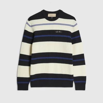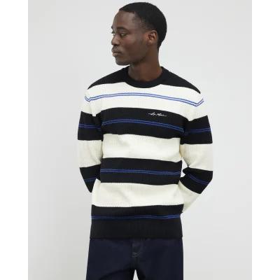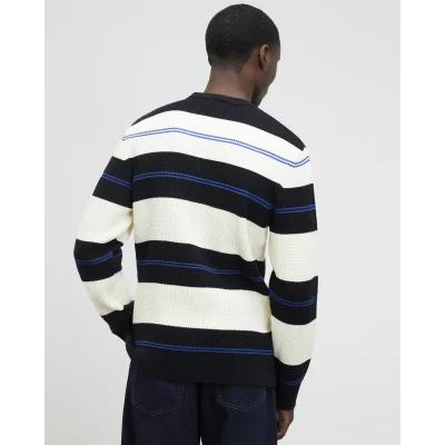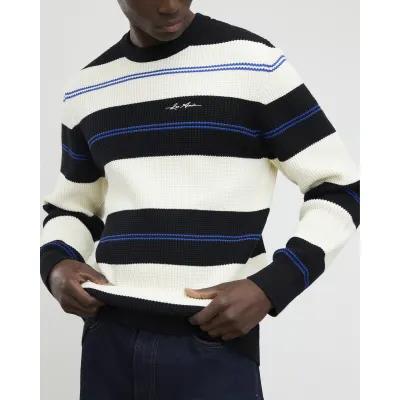 Blue Slim Fit Stripe Waffle Knitted Jumper