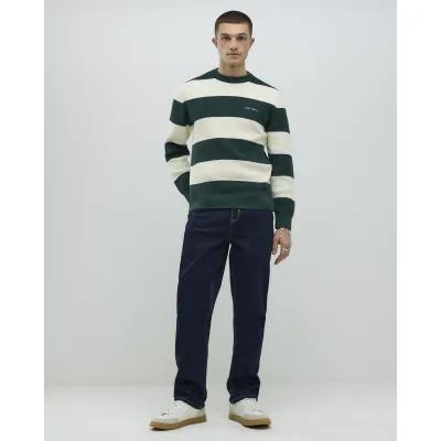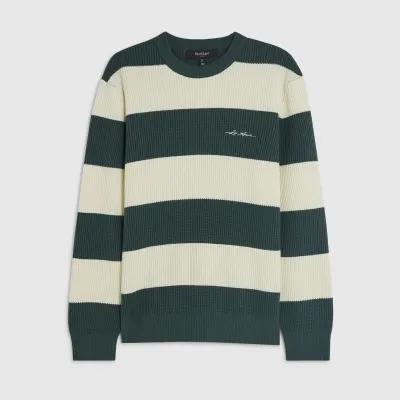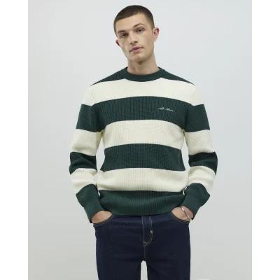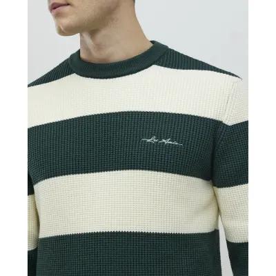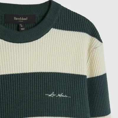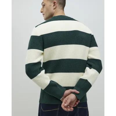 Green Slim Fit Waffle Knit Stripe Jumper