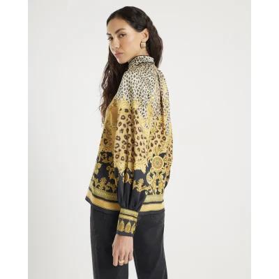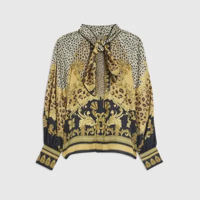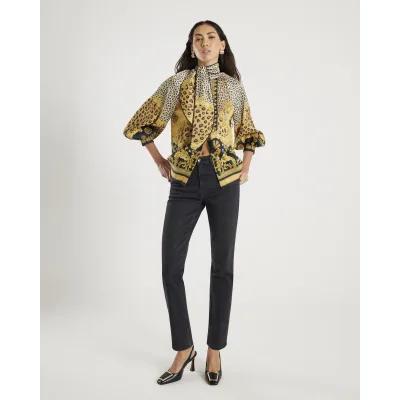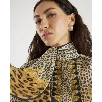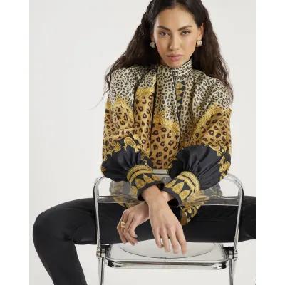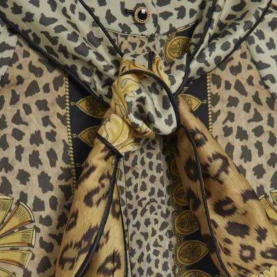 Brown Animal Print Pussybow Blouse