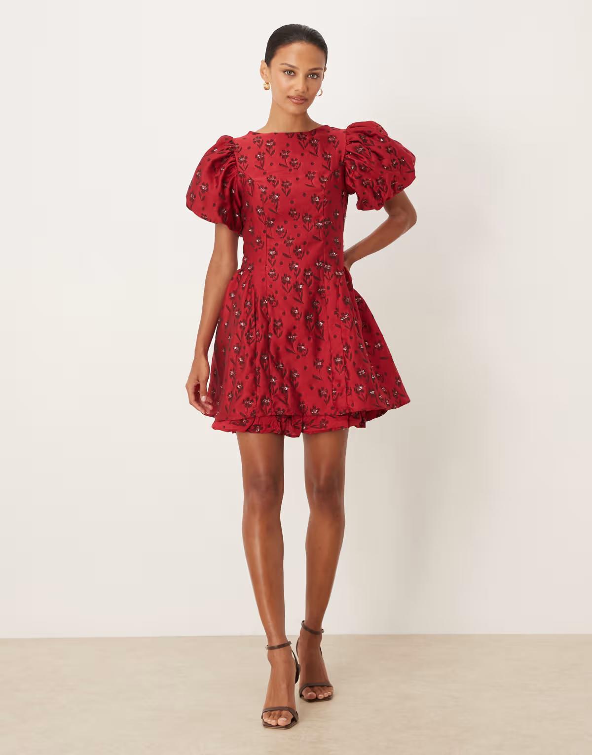 Sister Jane Nouveau jaquard ruffle mini dress in wine