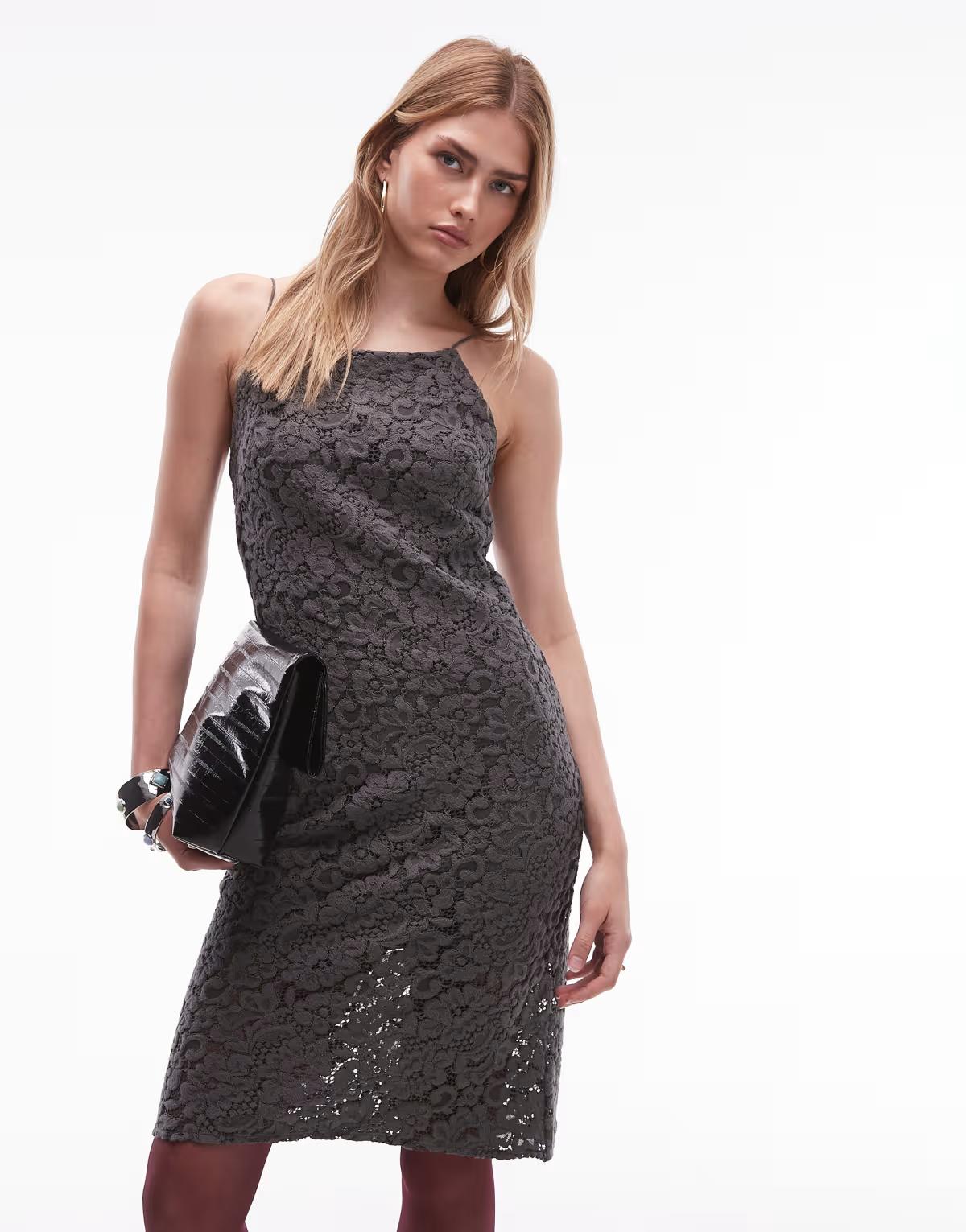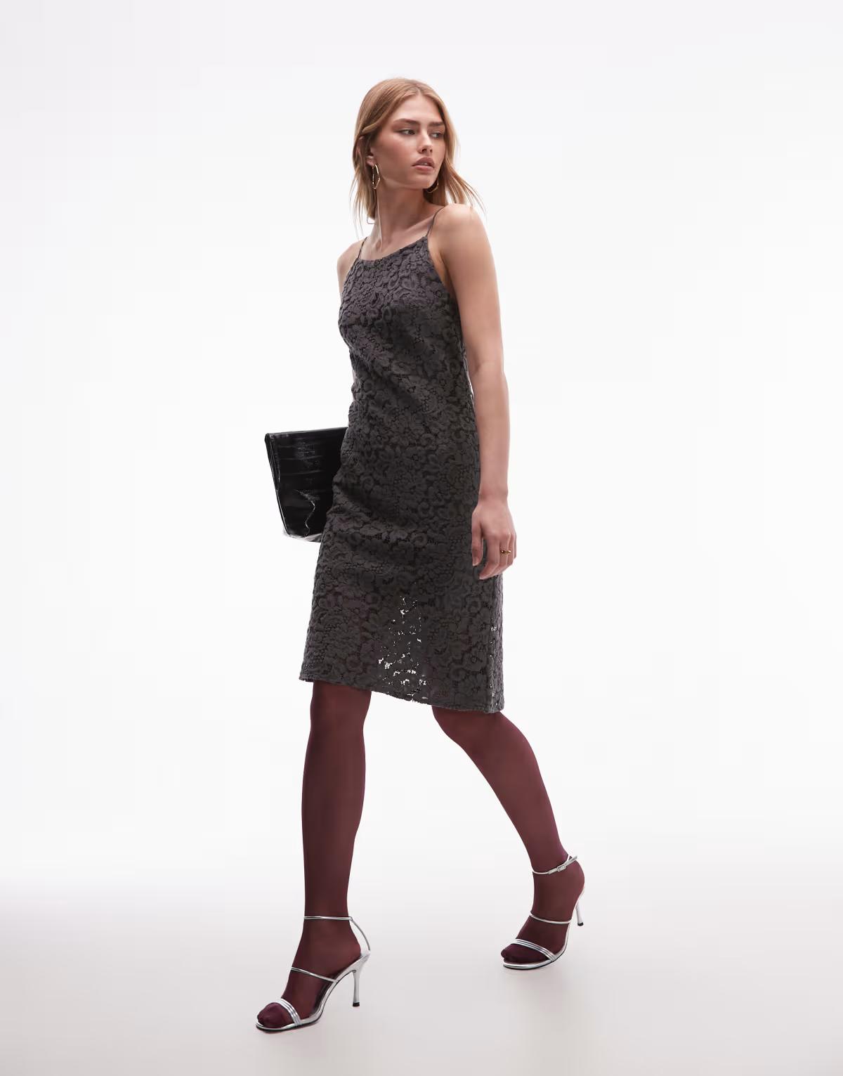 & Other Stories mini strap lace dress in black