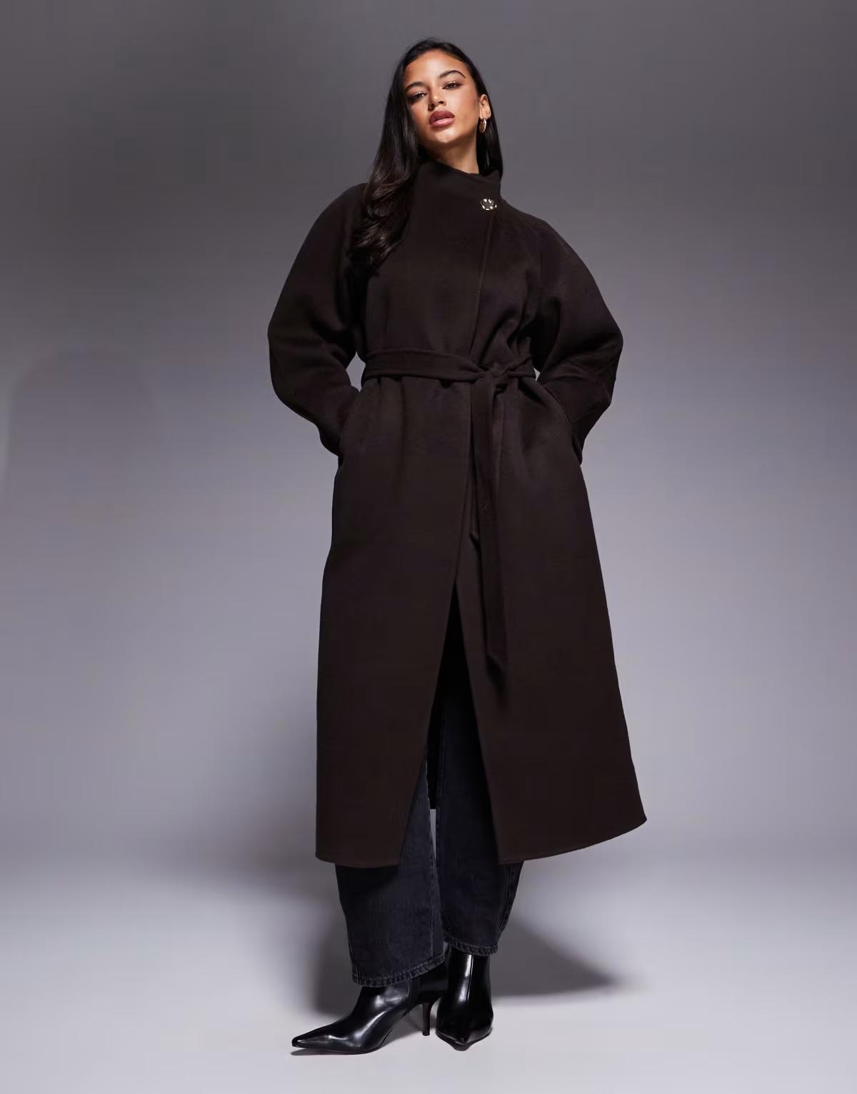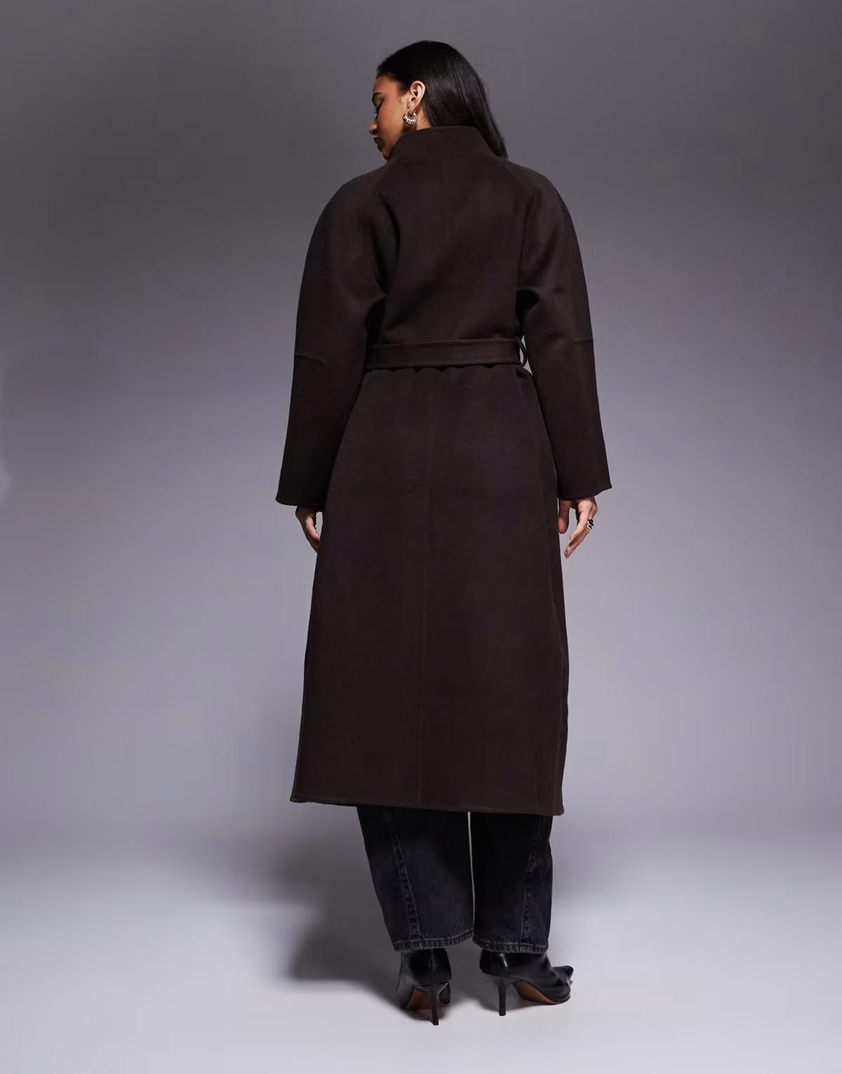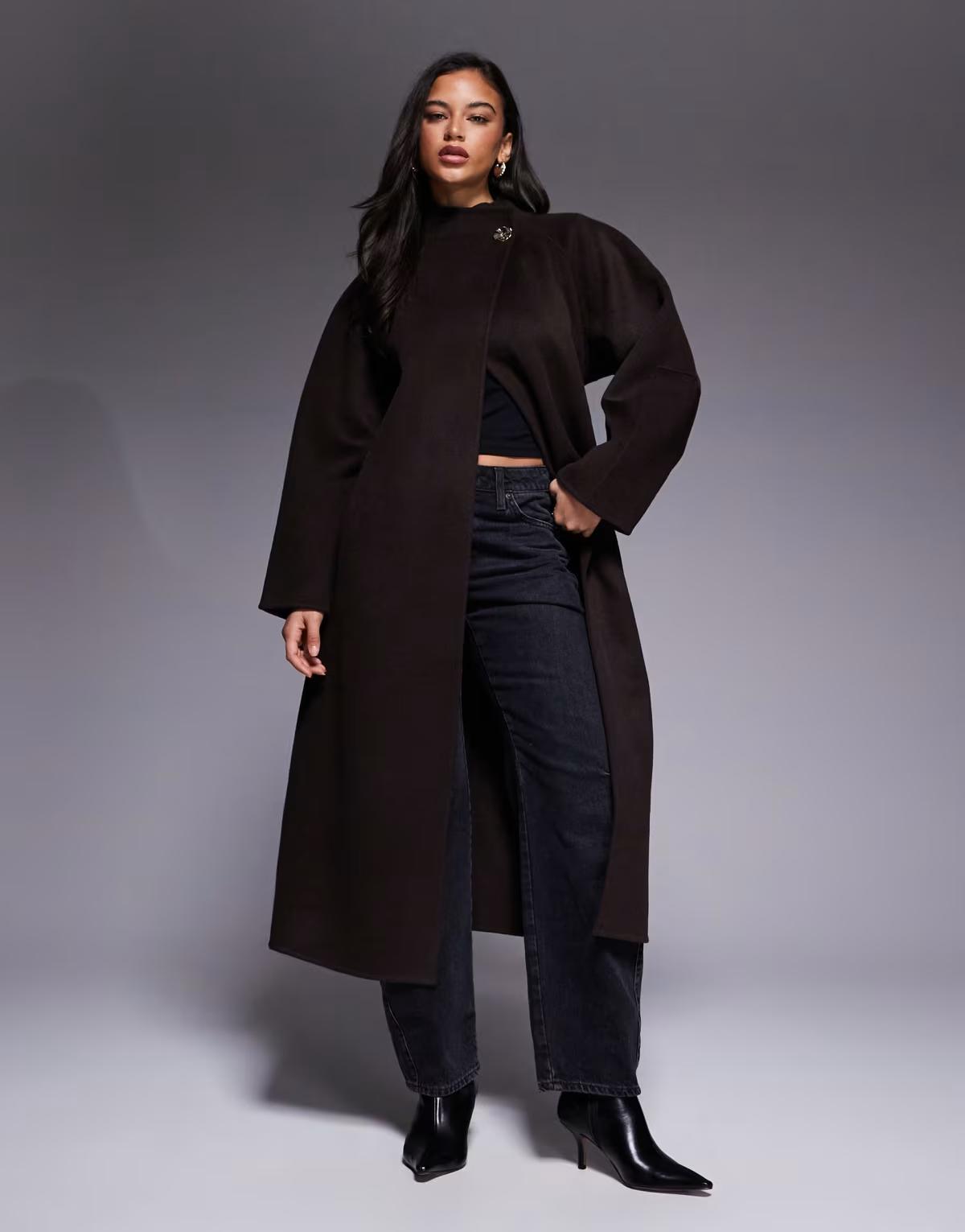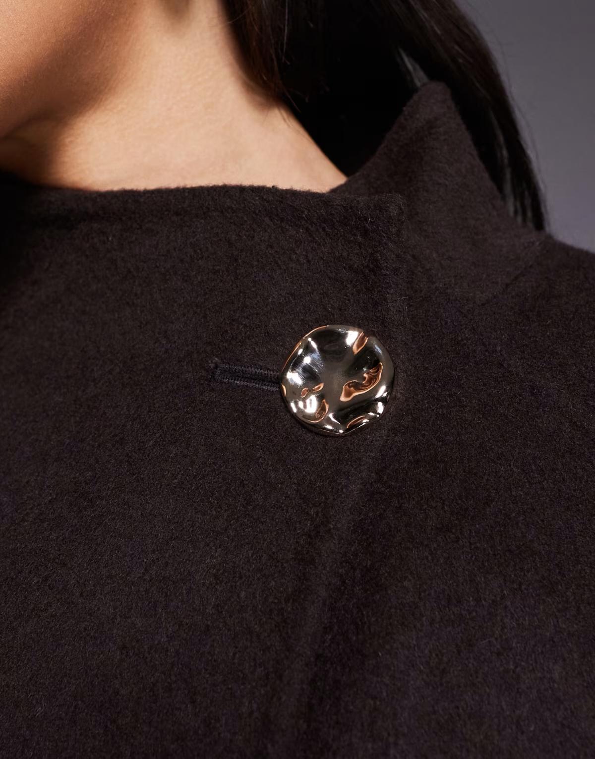ASOS DESIGN premium wool rich longline coat with gold button in chocolate
