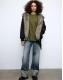Stradivarius Padded bomber jacket with faux fur hood in black
