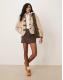 JDY contrast trims teddy jacket in cream