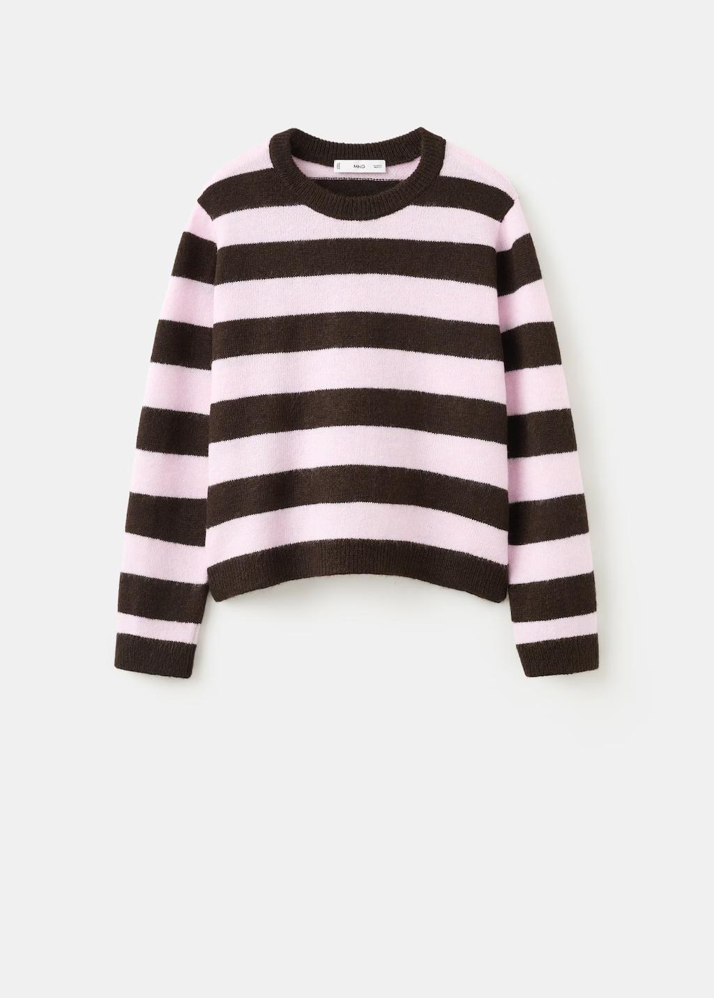 Tejido de punto medio. Diseño recto. Estampado de rayas. Cuello redondo. Manga larga. Sin cierre