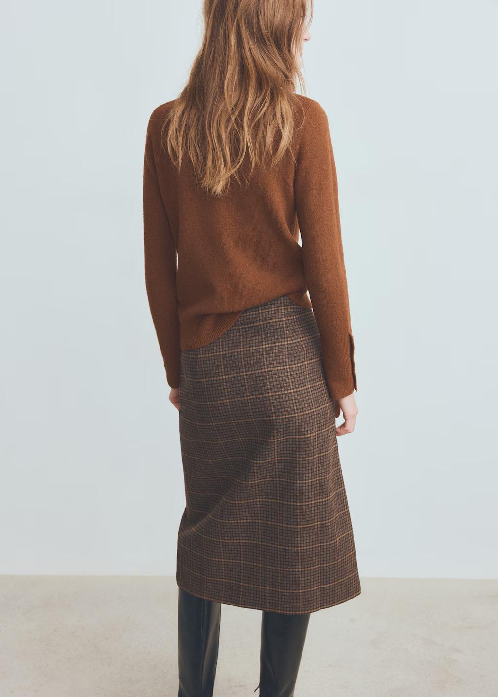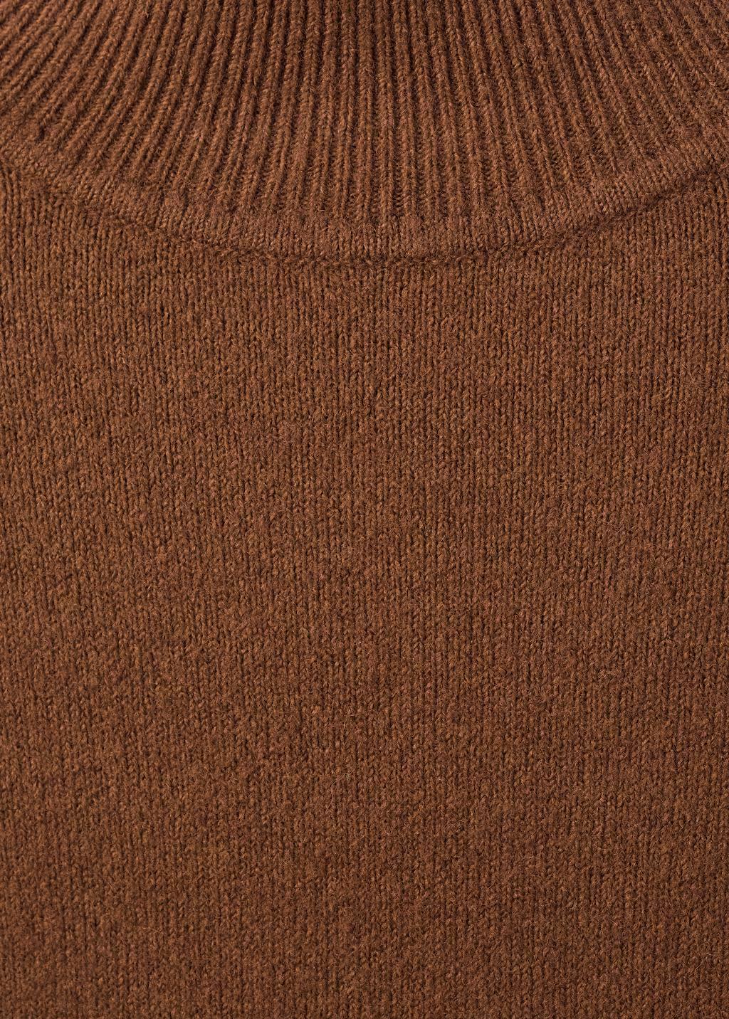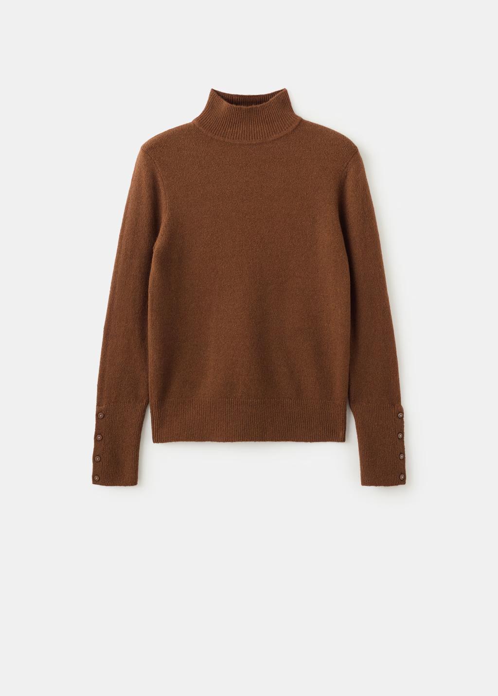 Tejido de punto medio. Diseño recto. Cuello perkins. Manga larga. Puños abotonados. Sin cierre