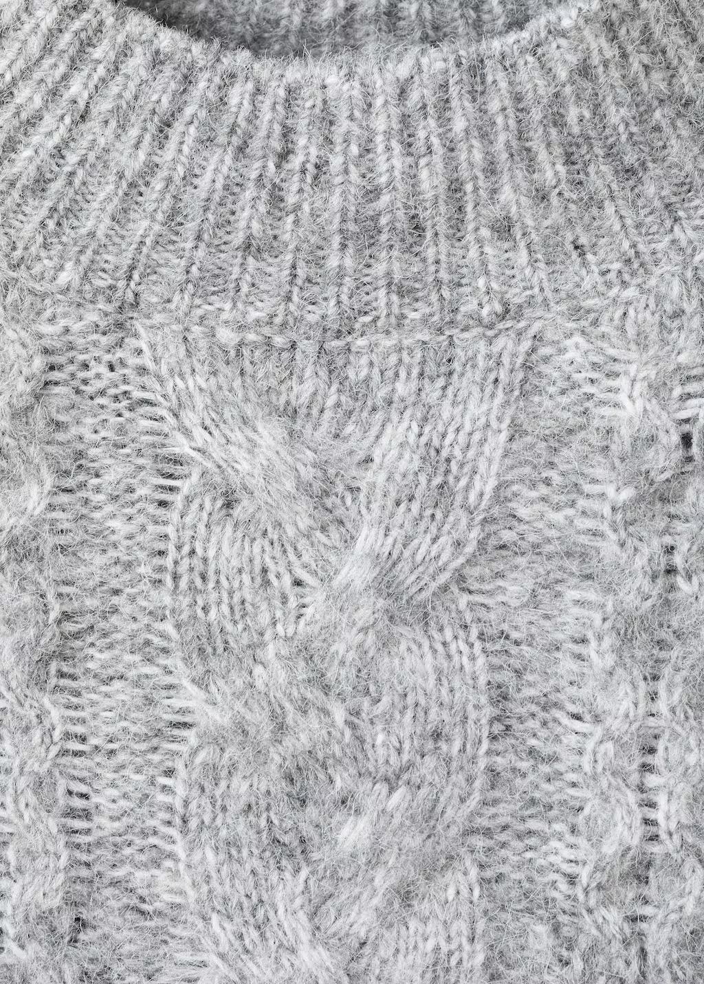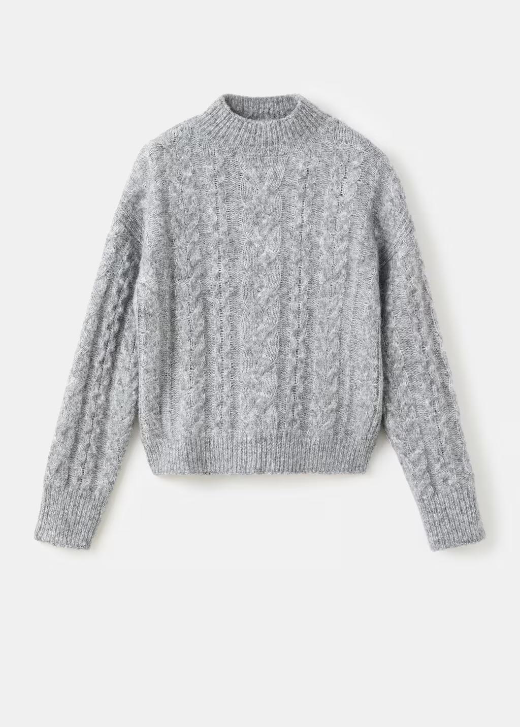 Tejido de punto grueso. Diseño recto. Diseño trenzado. Cuello perkins. Manga larga. Sin cierre
