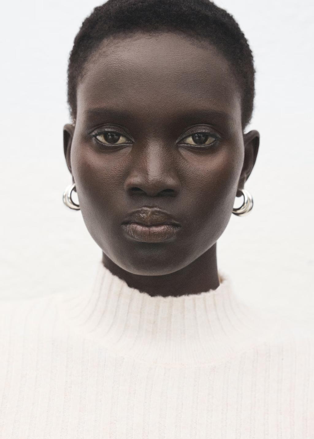 Tejido de punto medio. Diseño entallado. Diseño largo. Cuello perkins. Manga larga. Disponible Plus