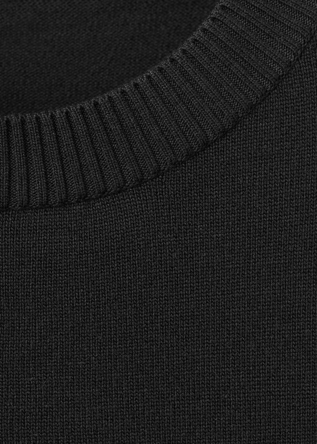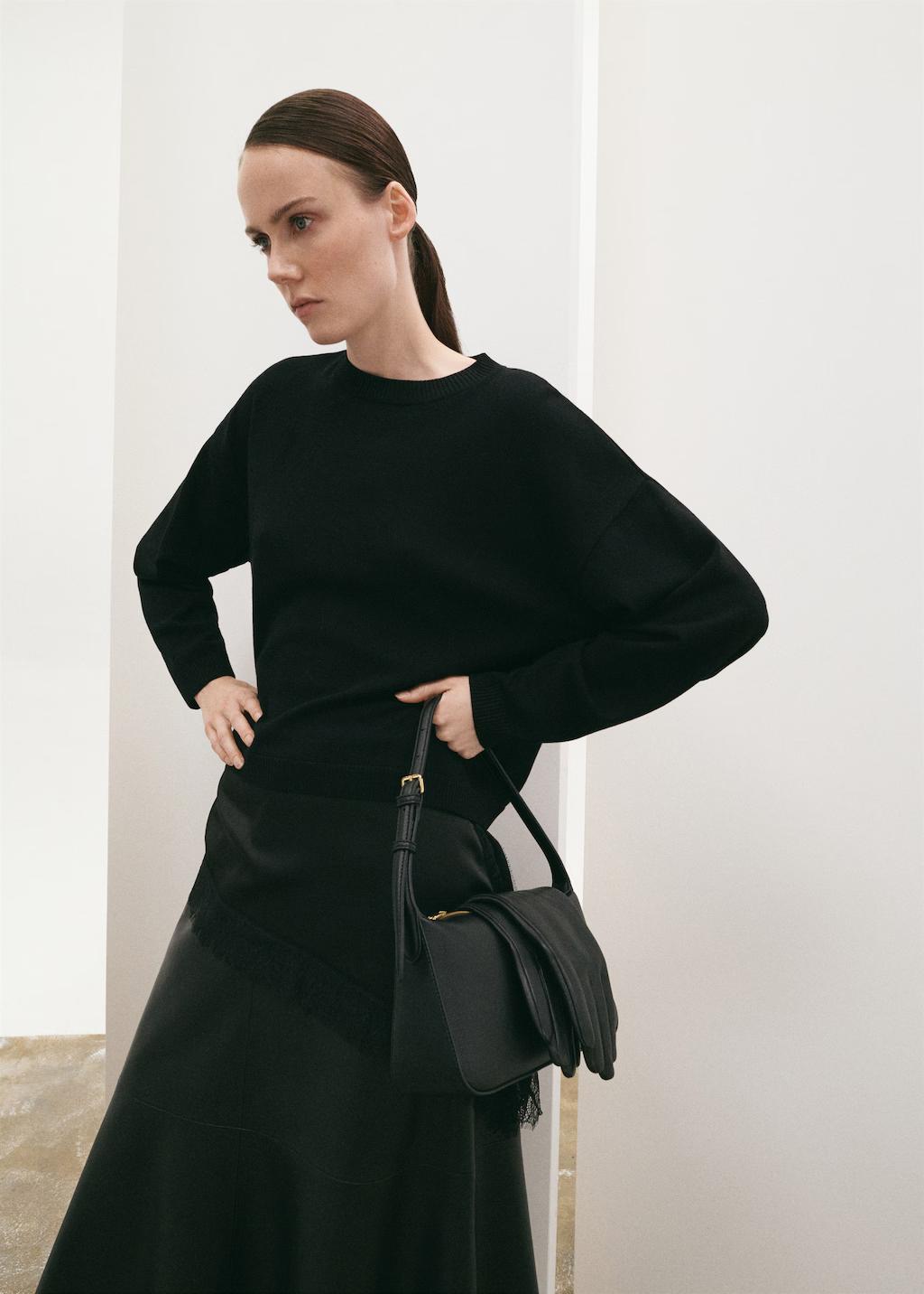 Tejido de punto fino. Diseño recto. Cuello redondo. Manga larga. bajo asimétrico encaje