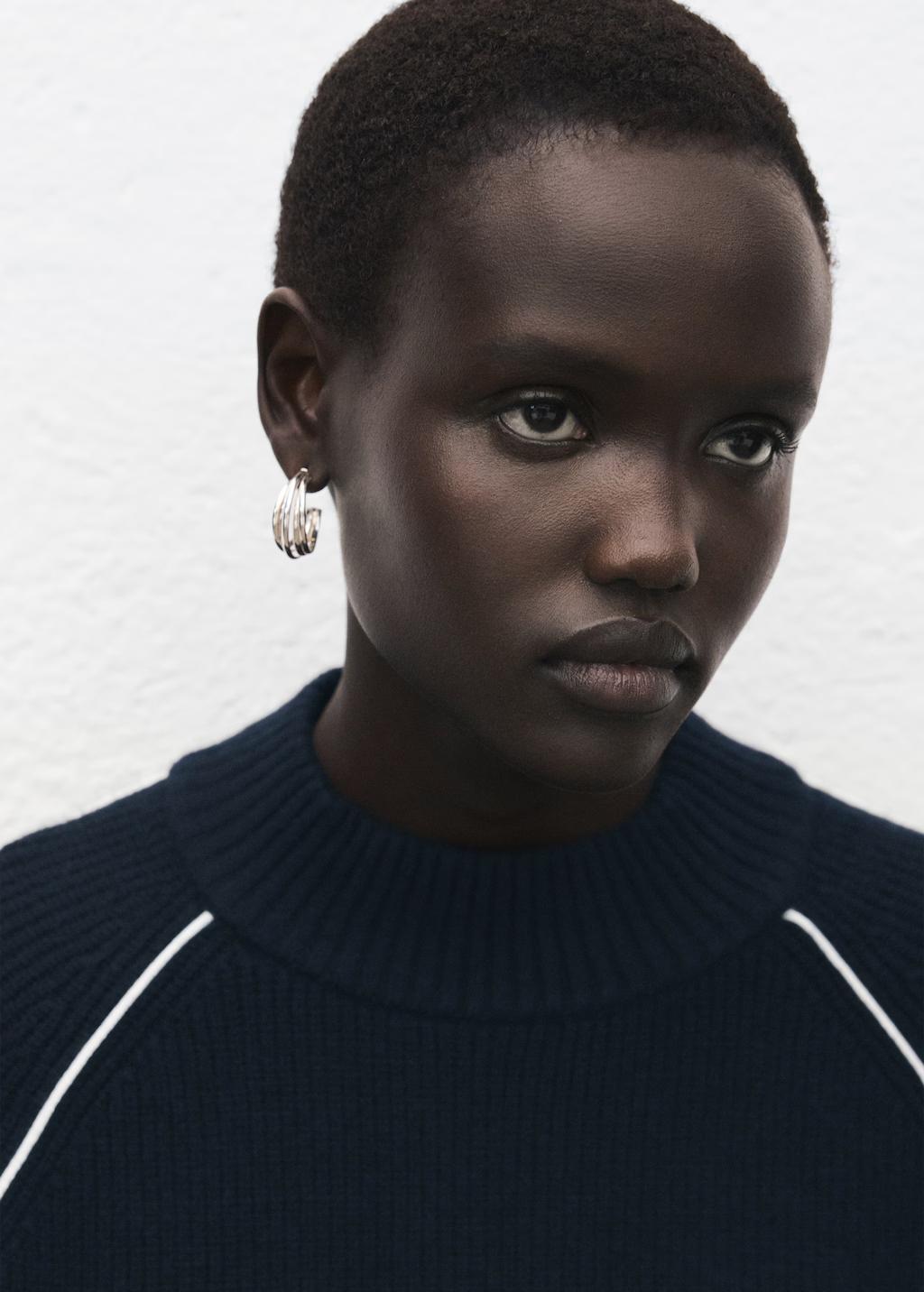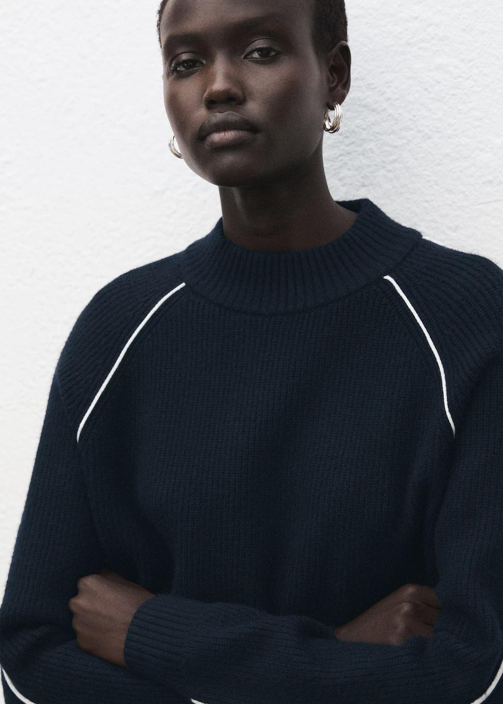 Tejido de punto grueso. Diseño recto. Cuello perkins. Manga larga. Sin cierre. Disponible Plus