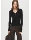 Tejido de punto de canalé. Diseño entallado. Cuello polo con cierre de botones. Manga larga. Disponible Plus