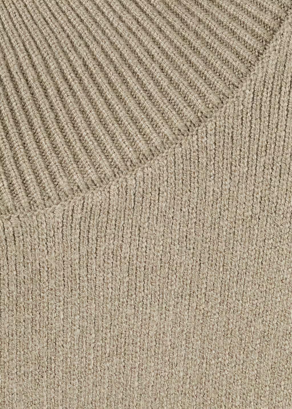 Tejido de punto fino. Diseño oversize. Cuello perkins. Manga larga. Terminaciones en canalé. Sin cierre