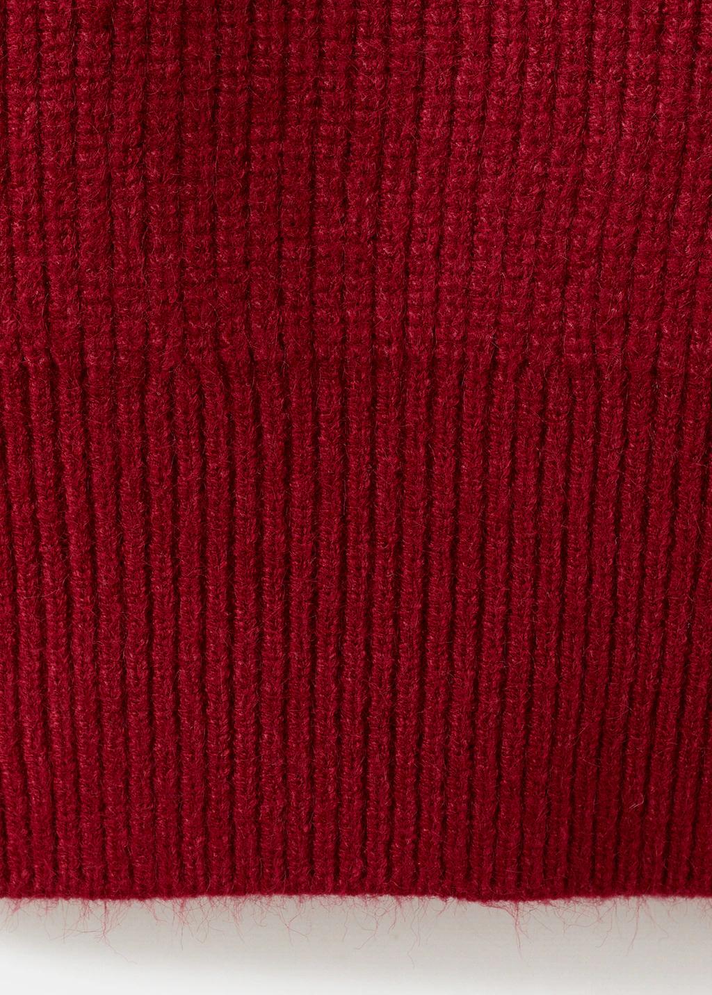 Tejido de punto grueso. Tejido de punto en canalé. Diseño recto. Cuello embudo. Cuello de solapa ancha. Manga larga. Cierre de cremallera en el cuello