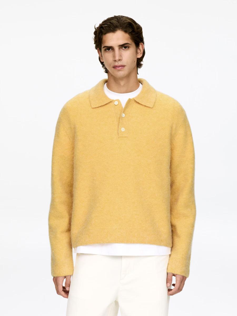 This plain-knit polo shirt is crafted from a rich alpaca-wool blend and has a hairy surface. It is a loose-fit style featuring a collar, a three-button half placket and rib-knitted trims.ARKET/Men's clothes/Men's knitwear/Men's polo shirts
