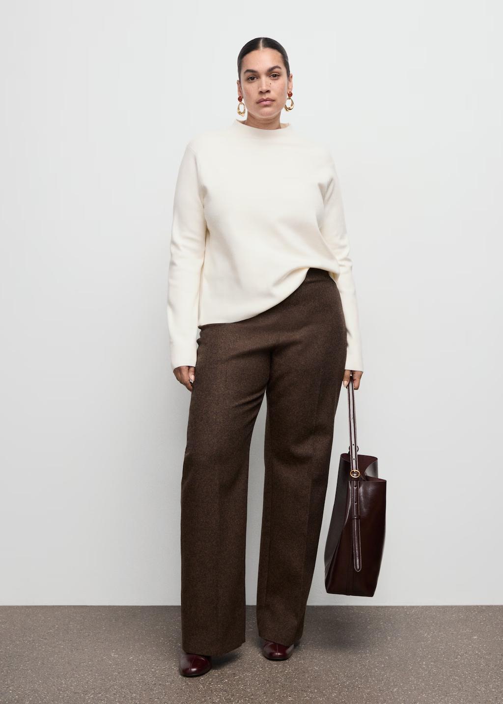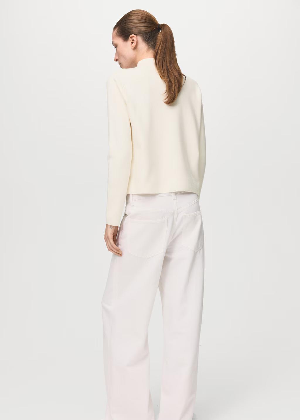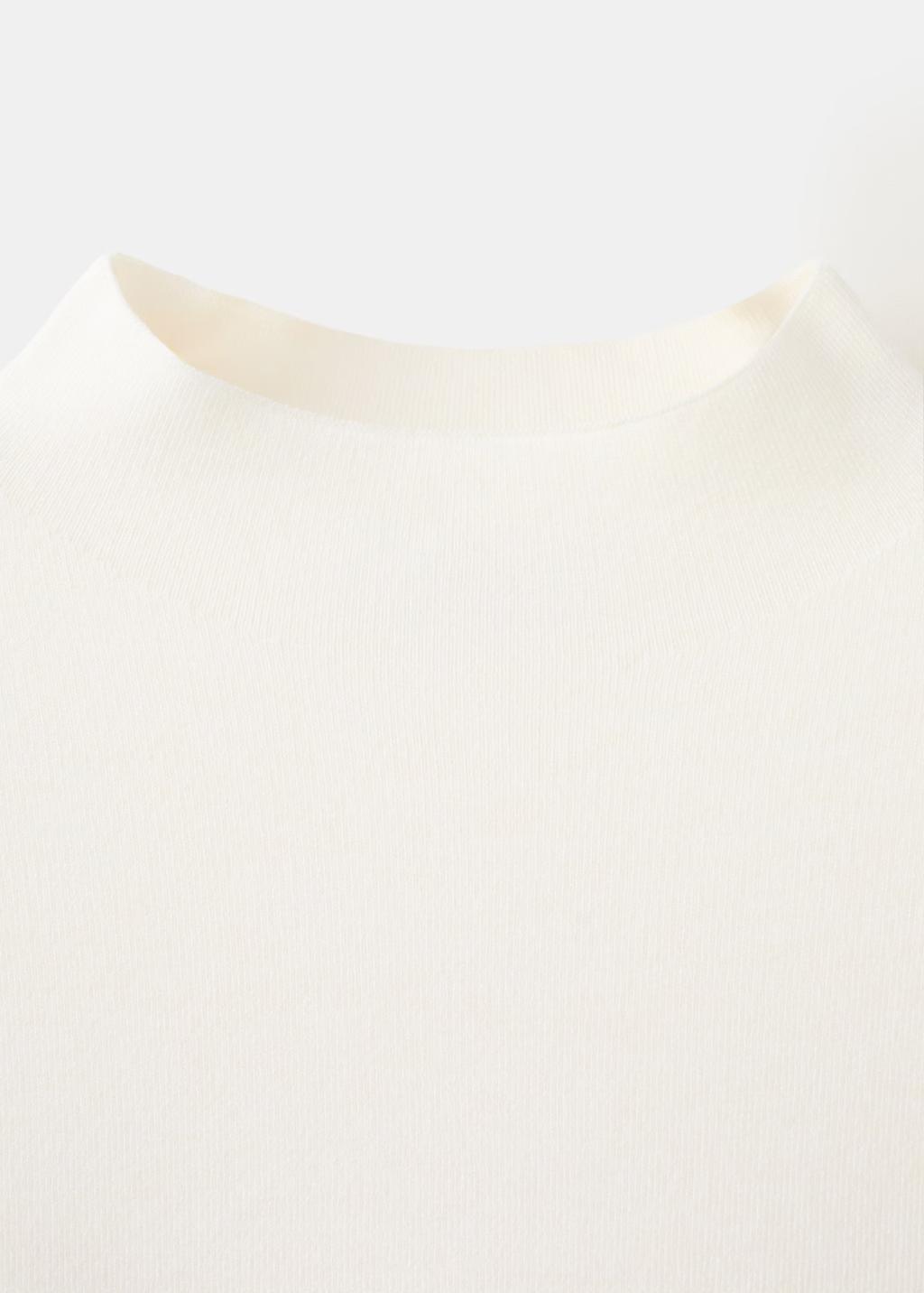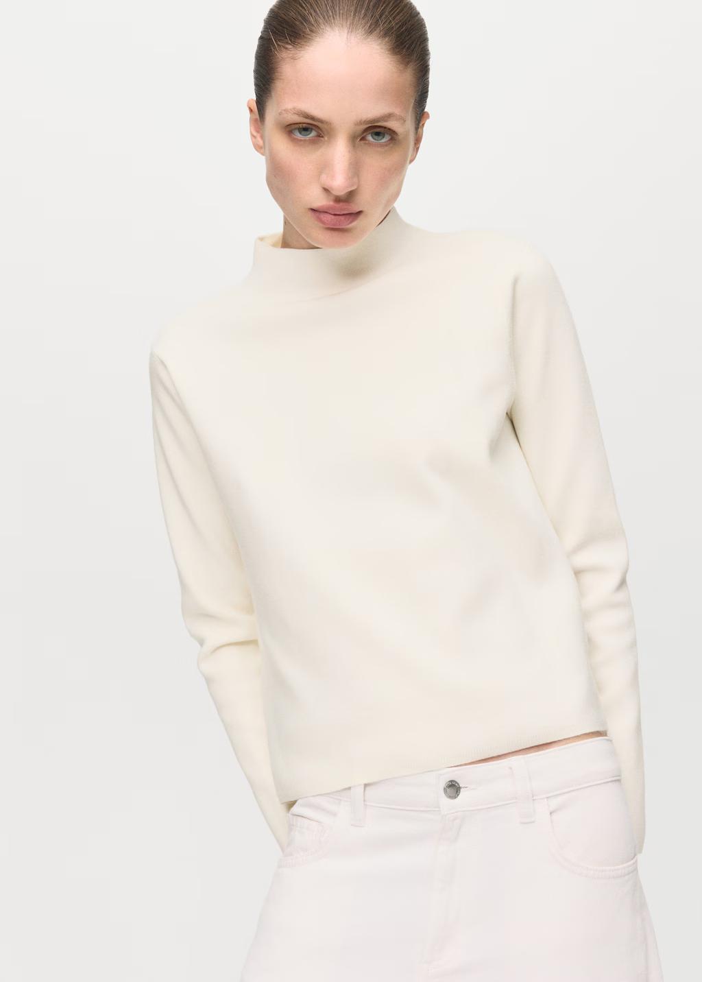 Confeccionado en tejido de punto fino, este diseño recto presenta un cuello perkins y manga larga