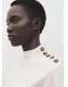 Confeccionado en tejido de punto medio, este diseño recto presenta un elegante cuello perkins y manga larga. El detalle de botones en el hombro añade un toque distintivo