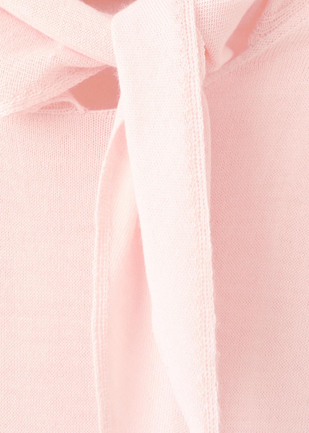 Tejido mezcla de lana. Tejido de punto fino. Diseño recto. Cuello alto. Cierre de nudo en el cuello. Manga larga. Sin cierre
