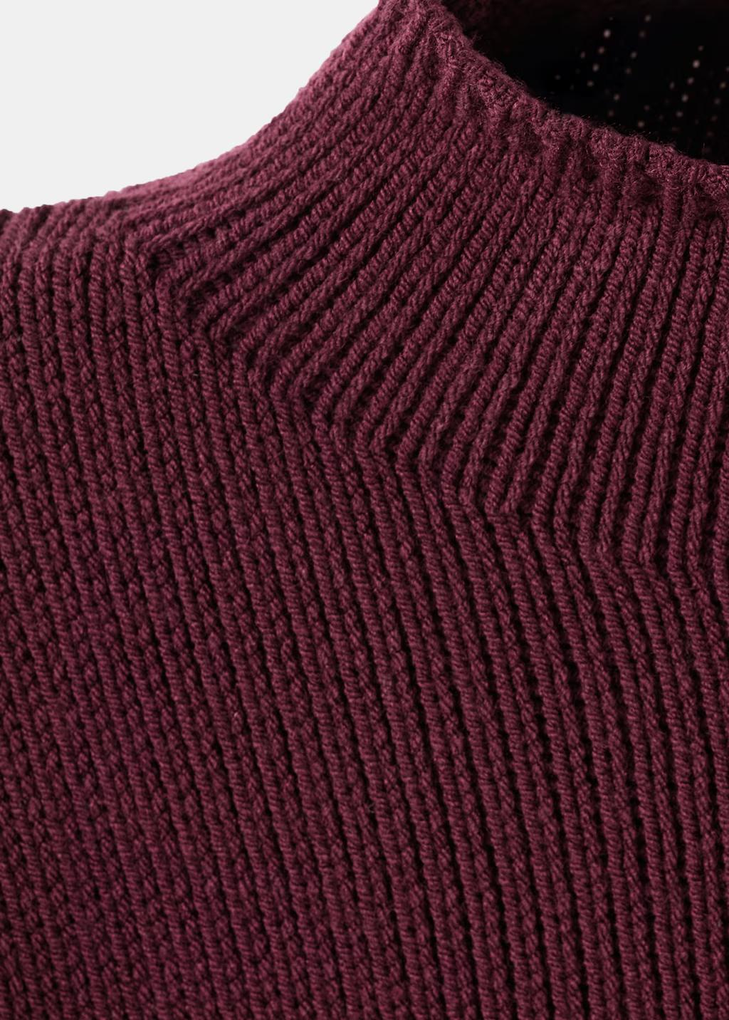 Tejido de punto medio. Diseño recto. Cuello perkins. Manga larga. Sin cierre