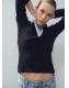 Confeccionado en tejido de punto grueso, este diseño entallado presenta un estilo combinado con cuello camisero y manga larga. Sin cierre, está disponible en tallas Plus