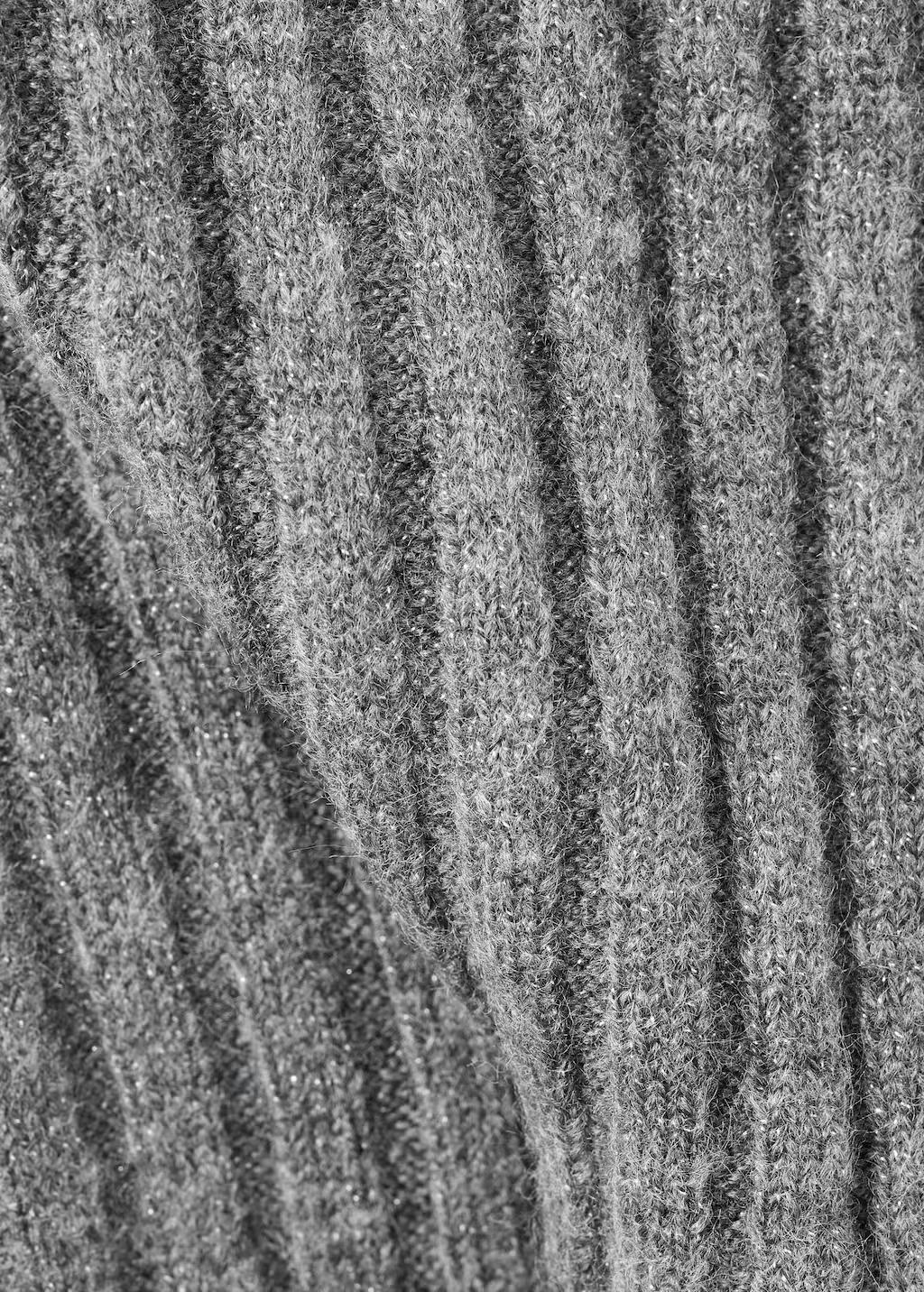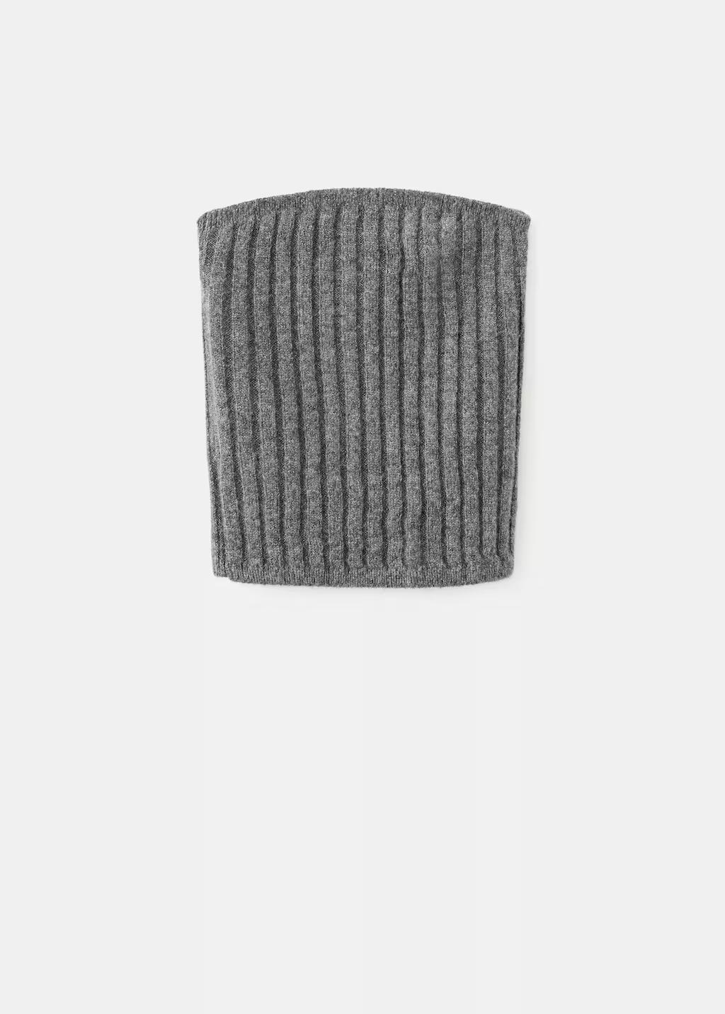 Confeccionado en tejido de punto con lúrex, este diseño entallado presenta un cuello palabra de honor sin mangas