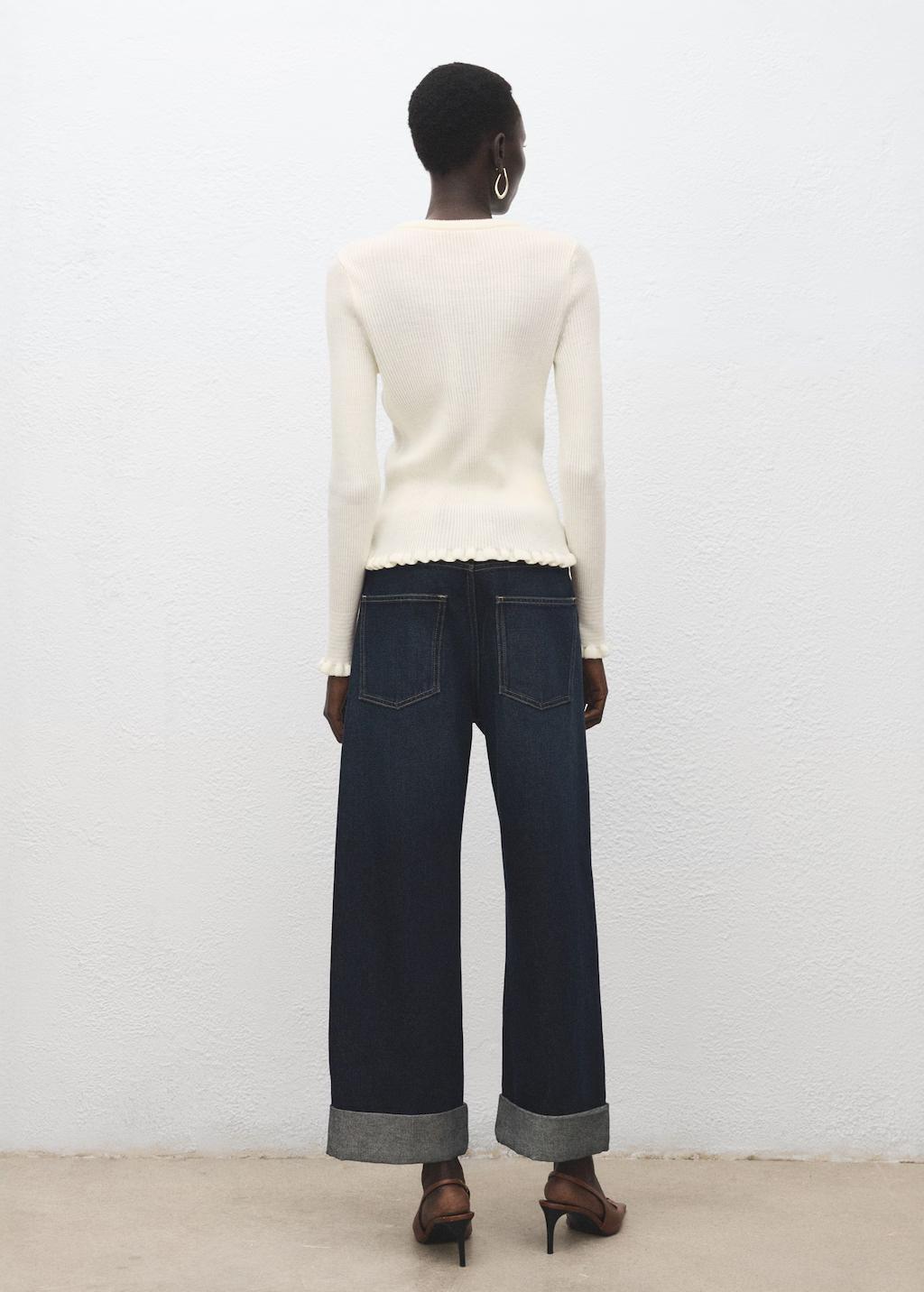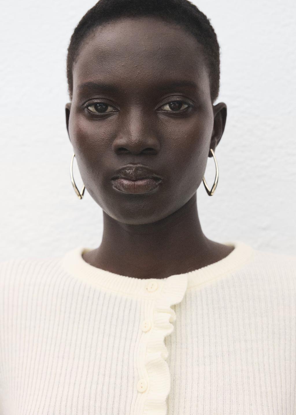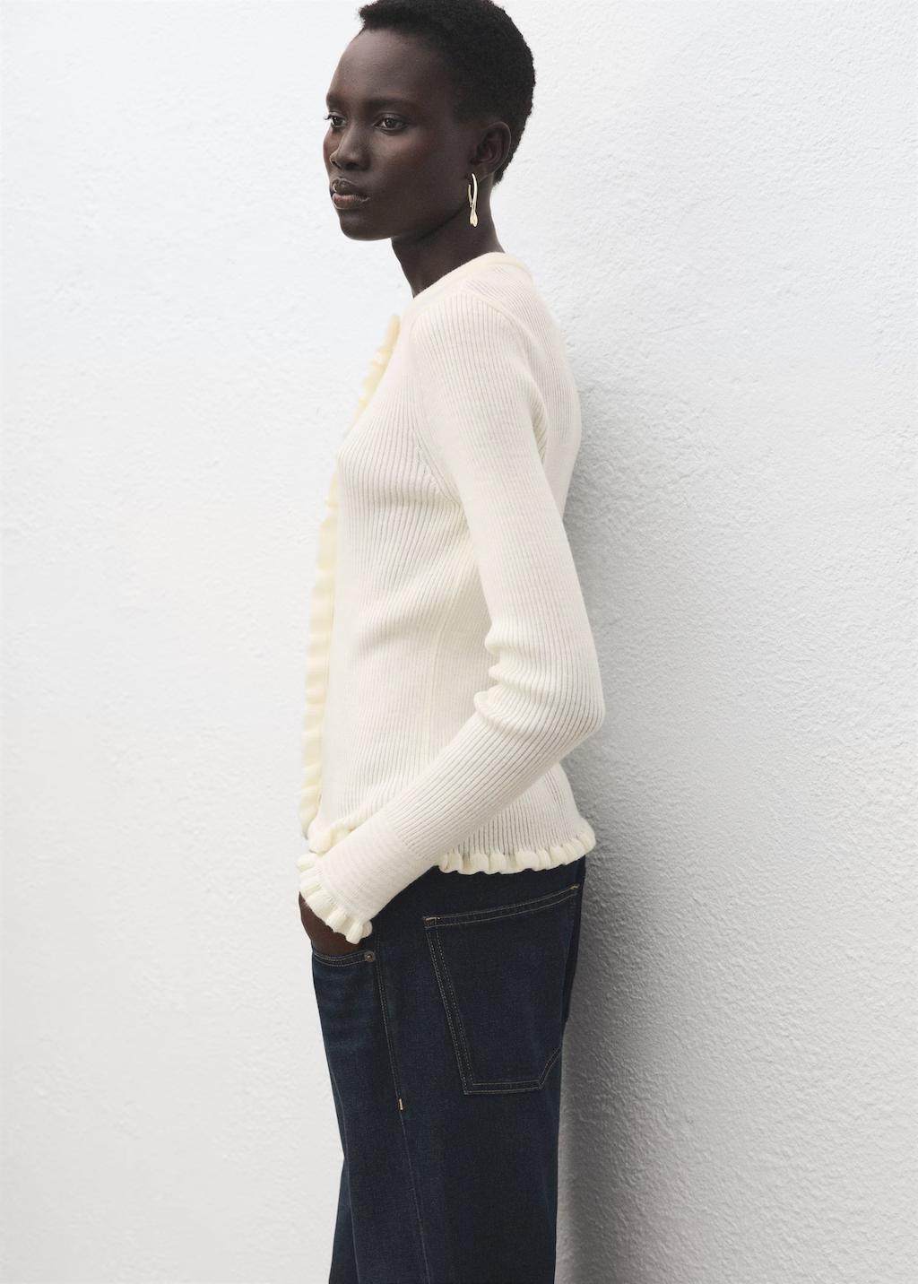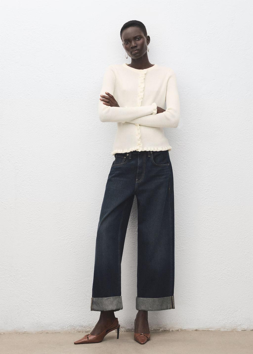 Confeccionado en tejido mezcla de lana, este diseño recto presenta un cuello redondo y manga larga. Las terminaciones festoneadas añaden detalle, mientras que el cierre delantero con botones completa su estilo