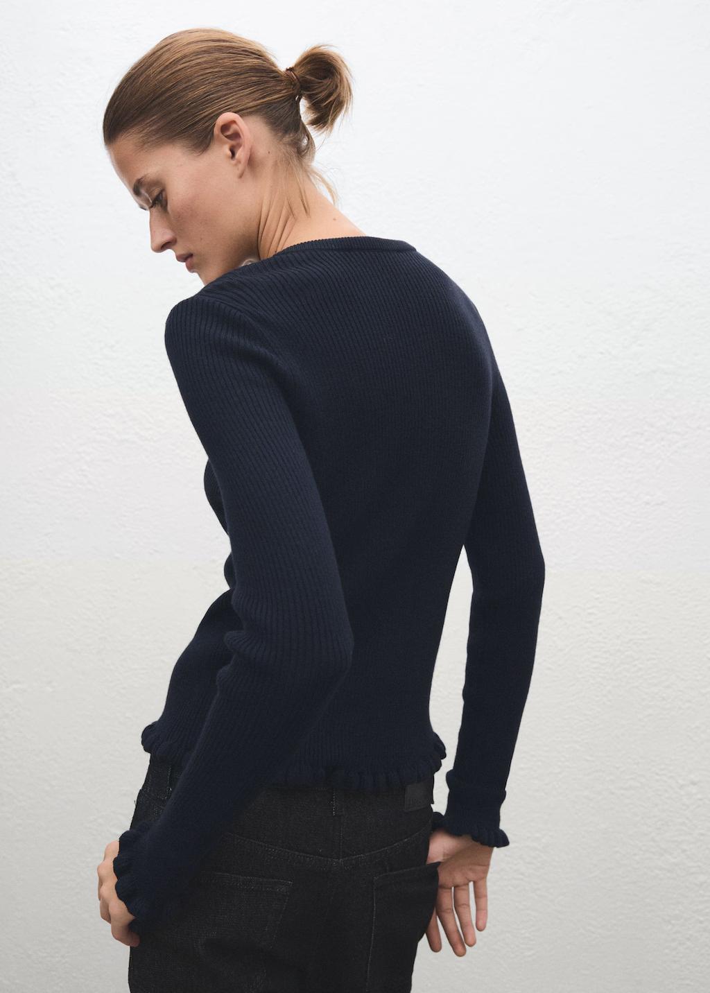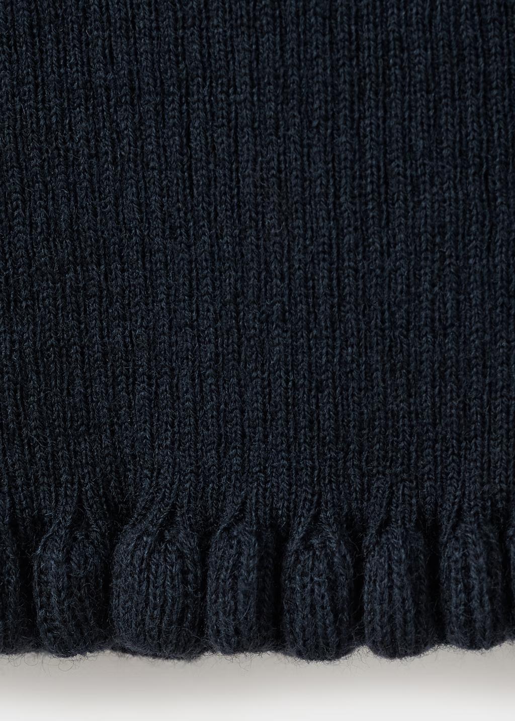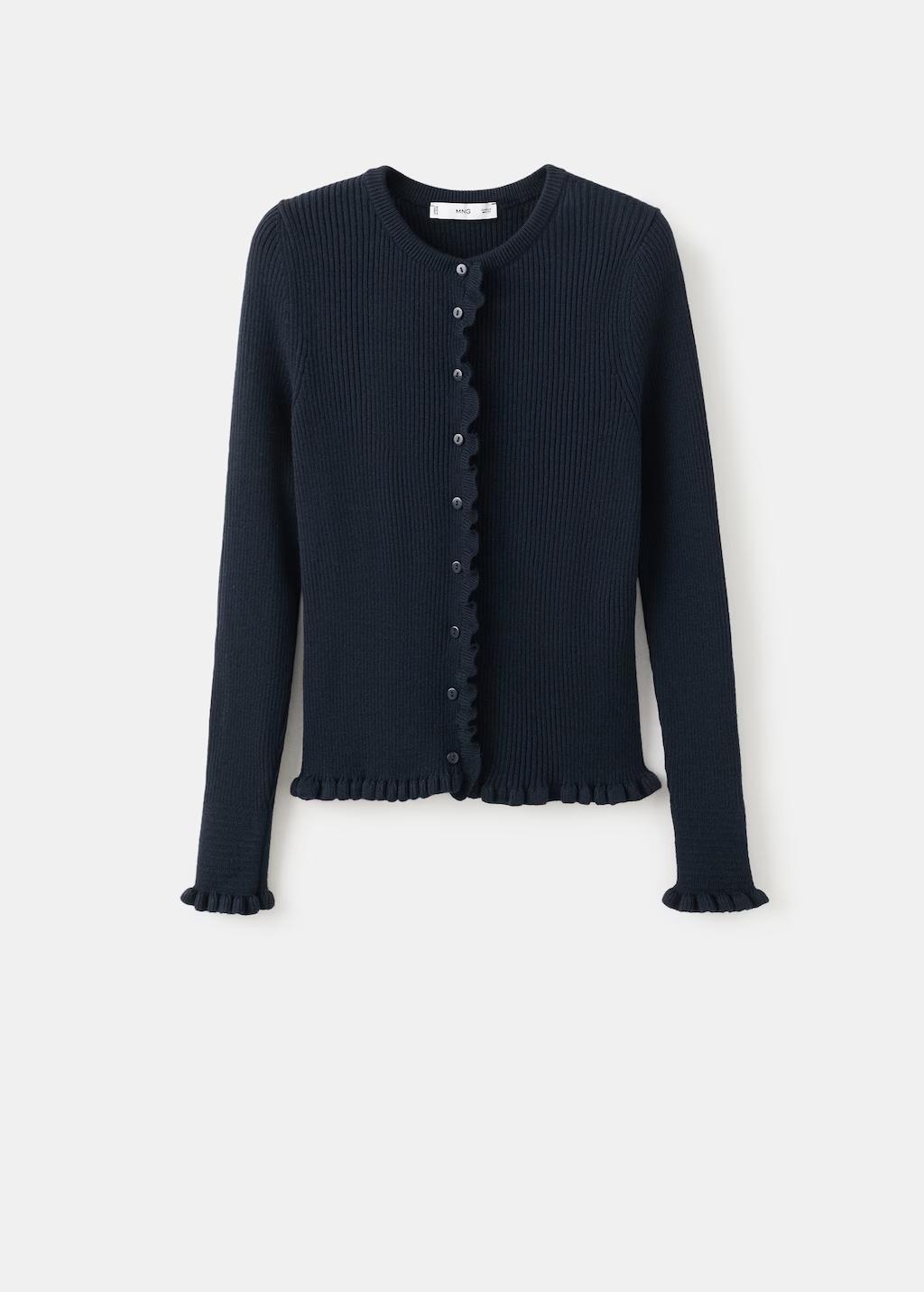 Confeccionado en tejido mezcla de lana, este diseño recto presenta un cuello redondo y manga larga. Las terminaciones festoneadas añaden detalle, mientras que el cierre delantero con botones completa su estilo