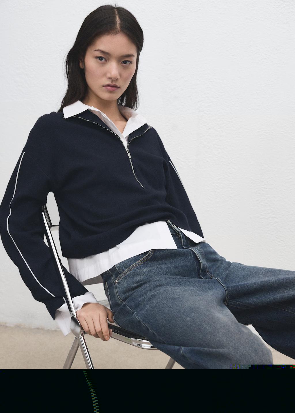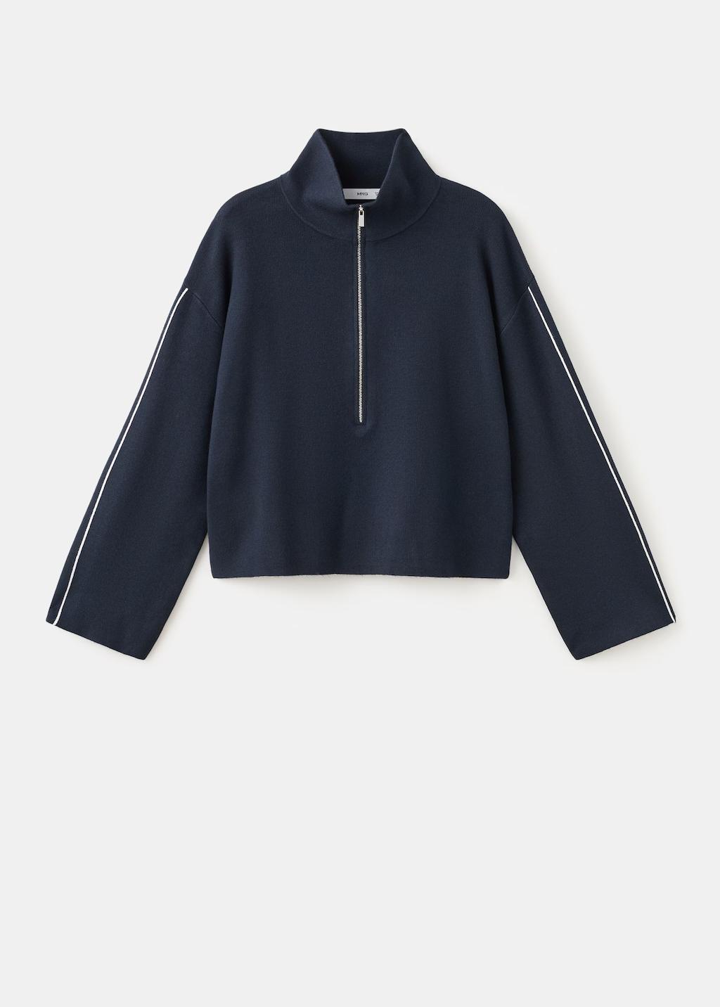 Tejido de punto fino. Diseño recto. Cuello alto con cierre de cremallera. Manga larga. Disponible Plus