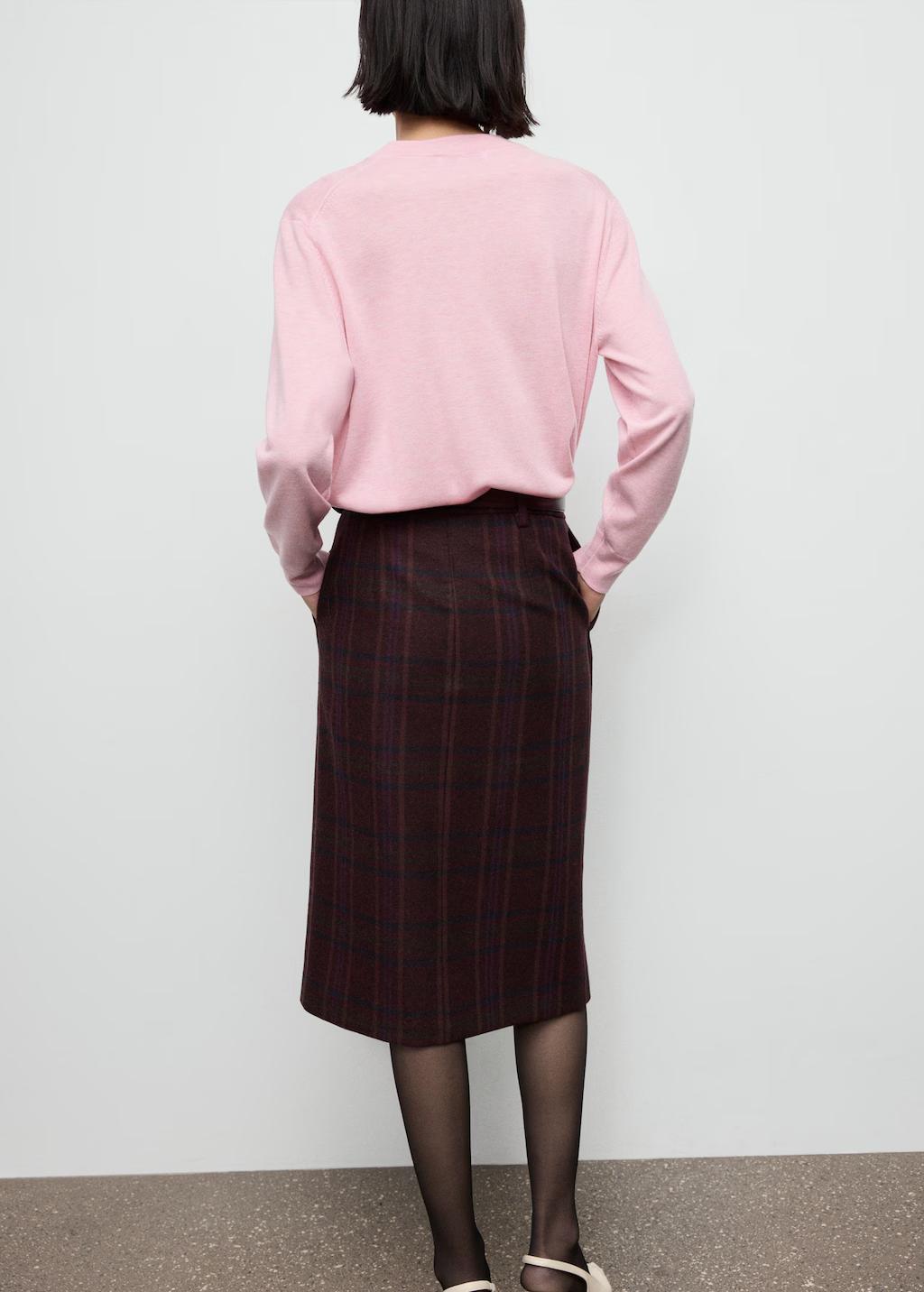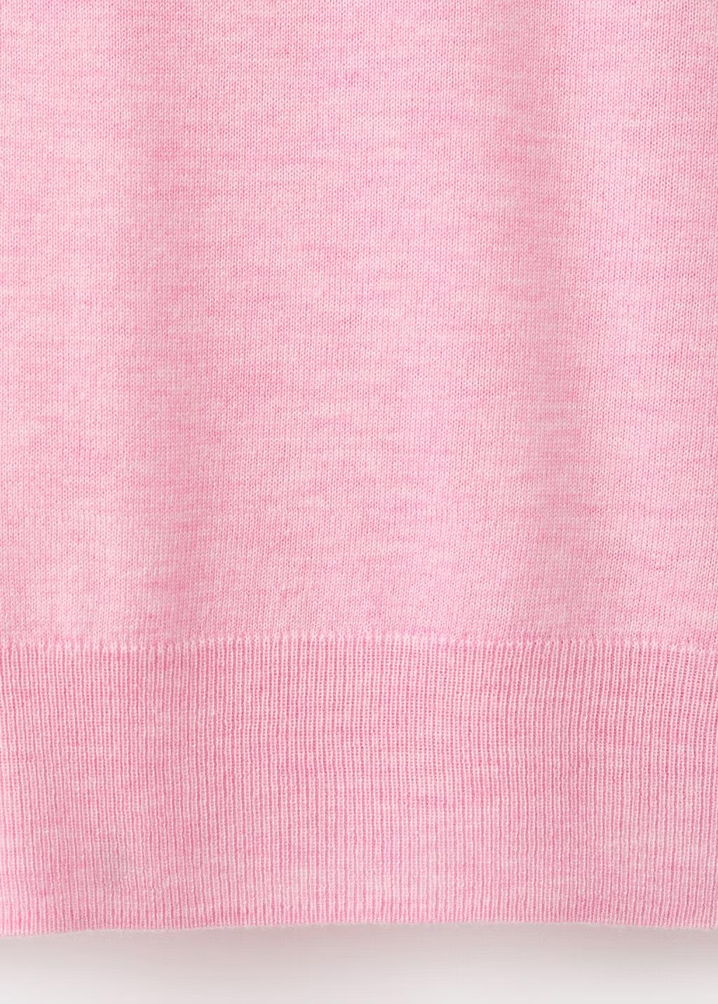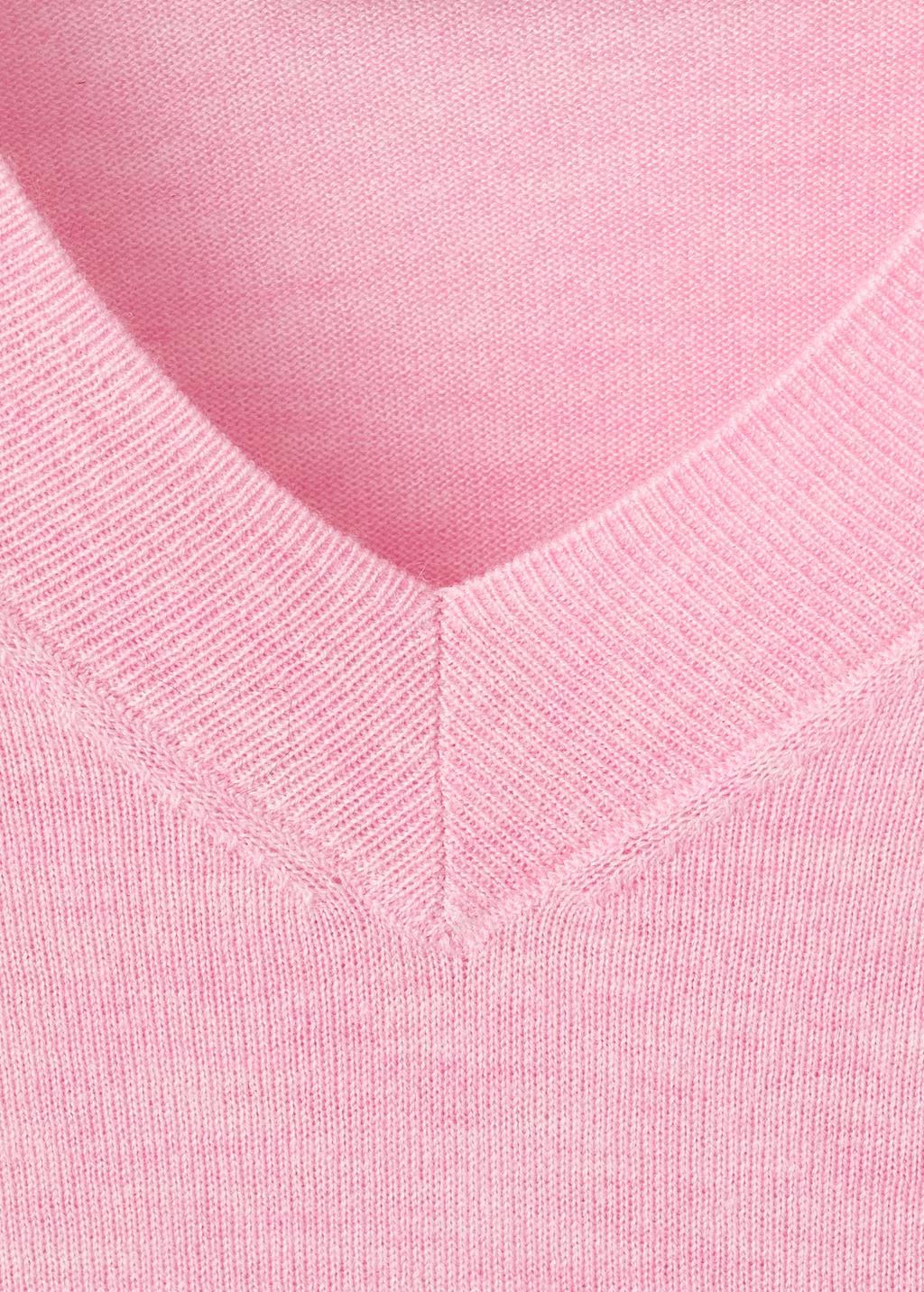 Confeccionado en tejido de punto fino, este diseño recto presenta un cuello pico y manga larga