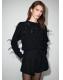 Confeccionado en tejido de punto grueso, este diseño recto presenta un elegante cuello caja y manga larga. El adorno de plumas de avestruz añade un toque distintivo