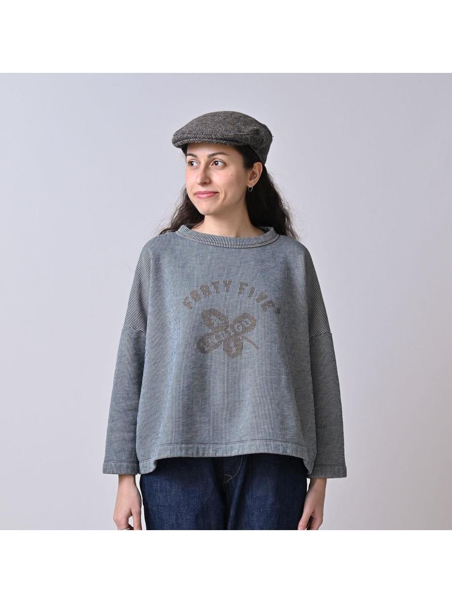 ONEONE 宝物のヒッコリー裏毛Mシャツ(インディゴ )