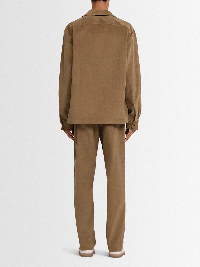 棉质灯芯绒衬衫 - 卡其色 - 男士 - The Core - 经典衬衫领.