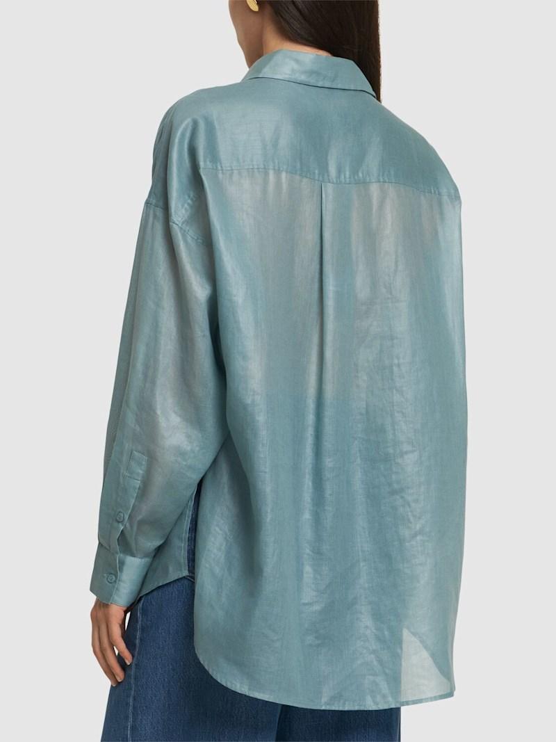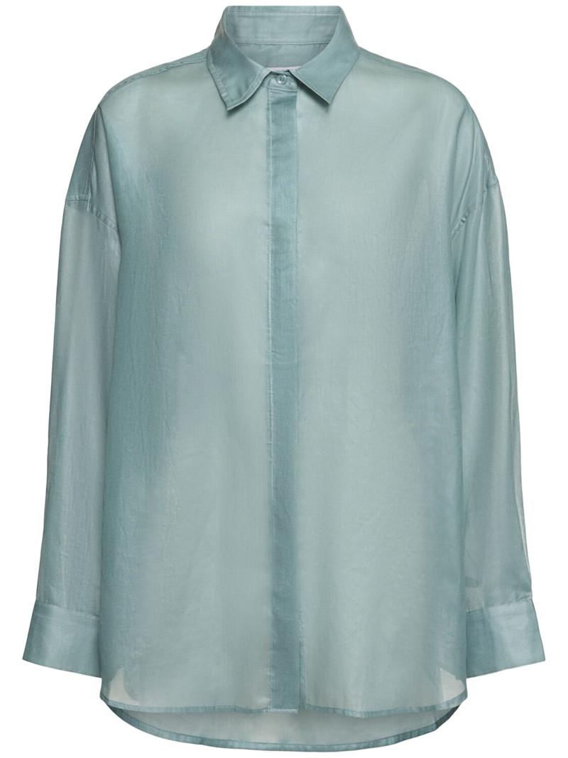大廓形欧根纱衬衫 - 浅蓝色 - 女士 - Abadia - 正面纽扣开合.