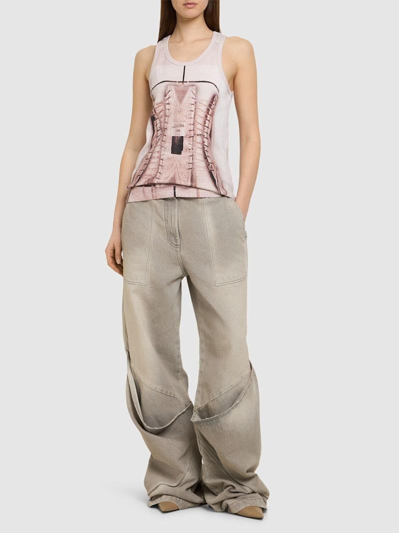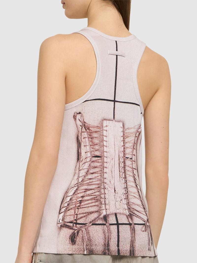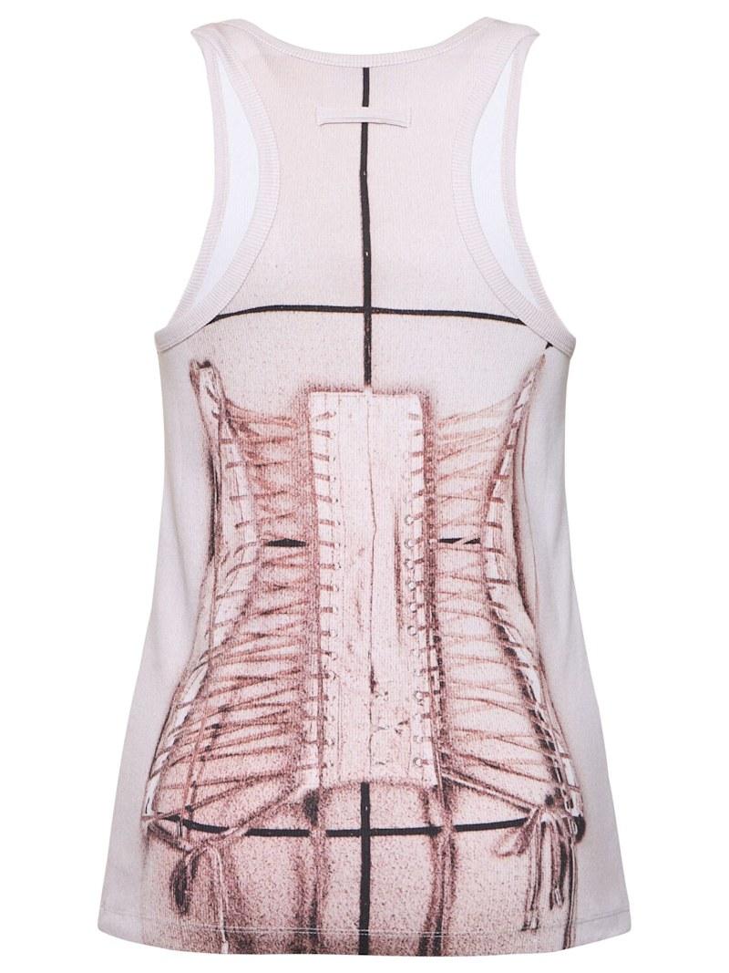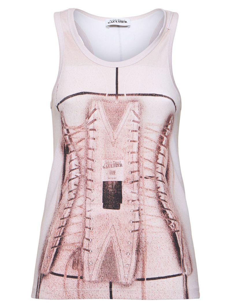 印花弹力棉质背心 - 粉色/白色 - 女士 - Jean Paul Gaultier - 印花设计