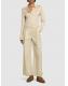 双腰带混棉裤子 - 奶油色 - 女士 - LOW CLASSIC - 正面隐藏式拉链开合.