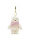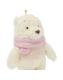 Small soft toy keyring featuring Winnie the Pooh in a snowy white covering with pink scarf