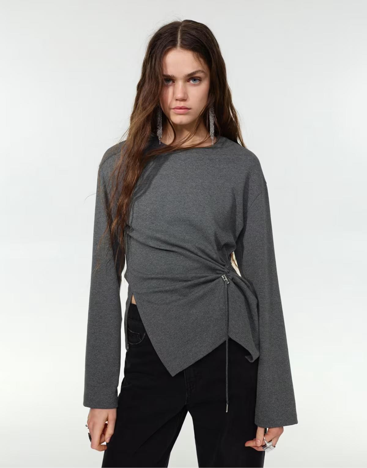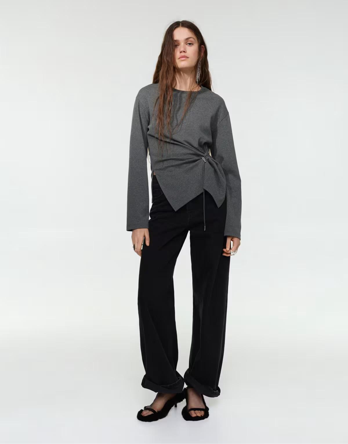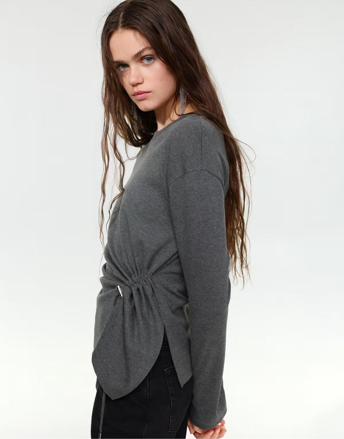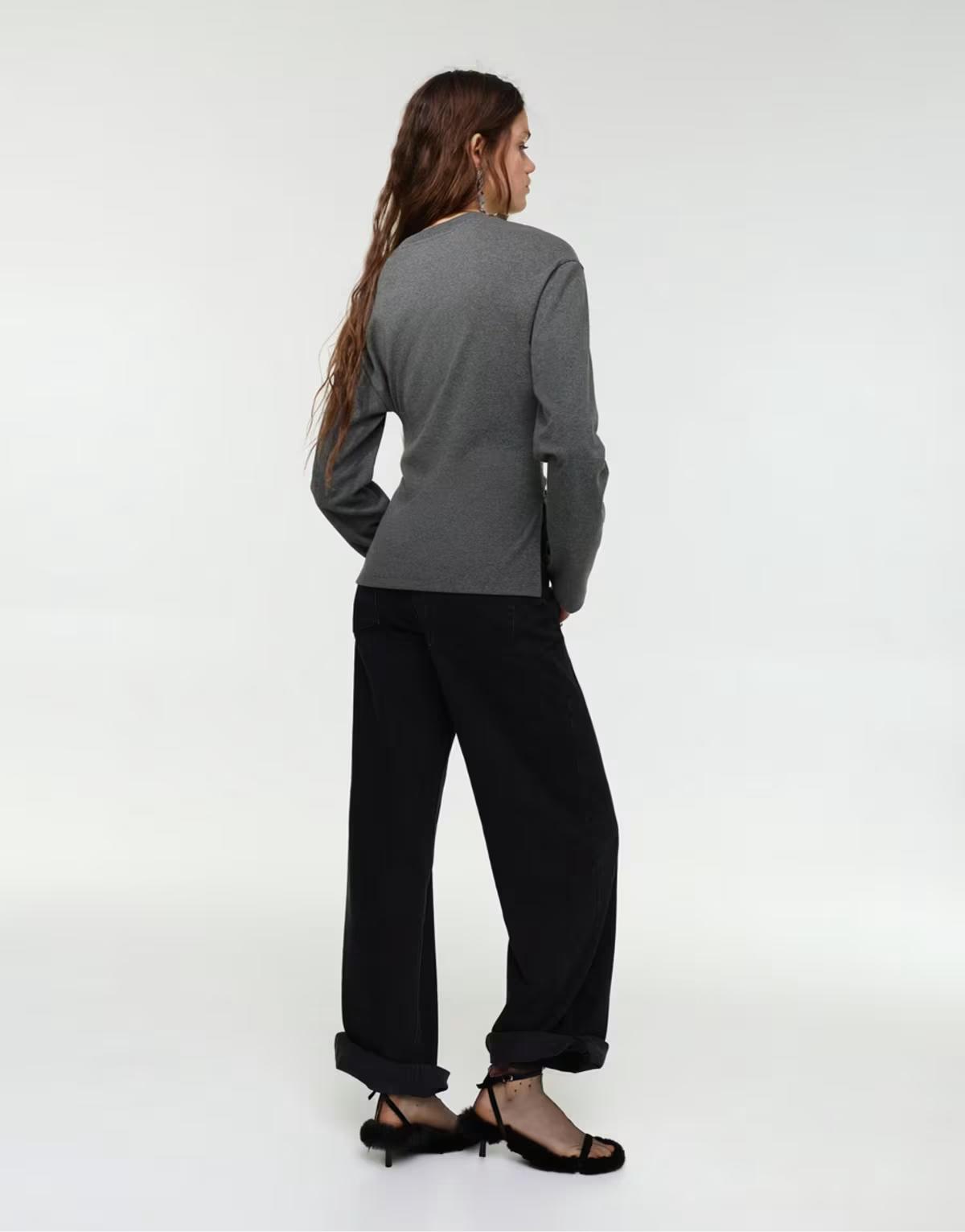 Pull&Bear Long sleeve t-shirt in grey marl