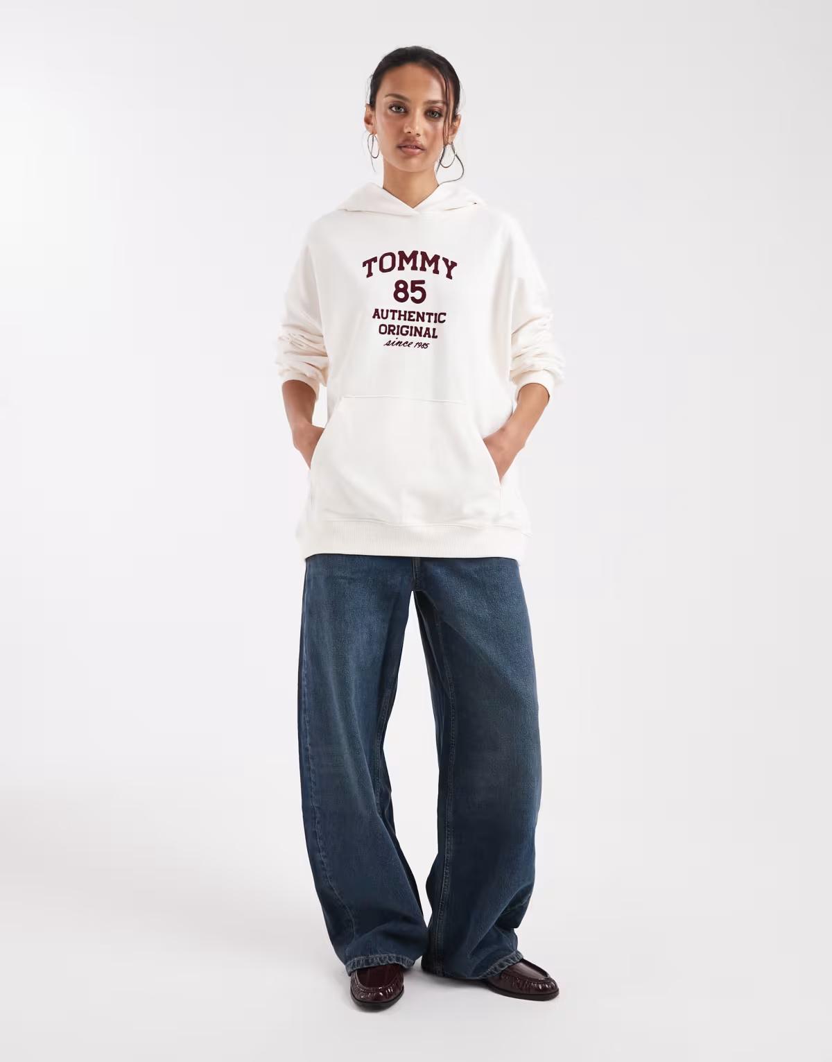 Machine wash according to instructions on care labelMain: 100% Cotton.Founded in 1985, all-American brand Tommy Jeans is best known for its preppy vibe and iconic red, white and blue logo. Branching out, the brand has stepped up its collections to include everything from clothing and accessories to lingerie and fragrances. Scroll our Tommy Jeans at ASOS edit for classic denim pieces from Tommy Jeans, workout gear from Tommy Hilfiger Sport, as well as wardrobe-ready T-shirts, dresses, jackets and coats.