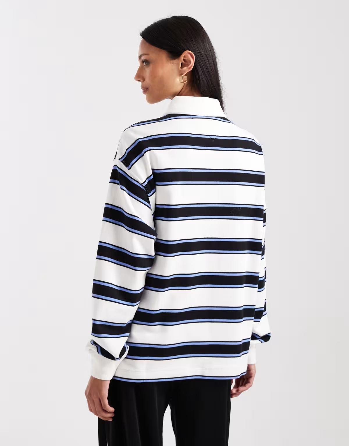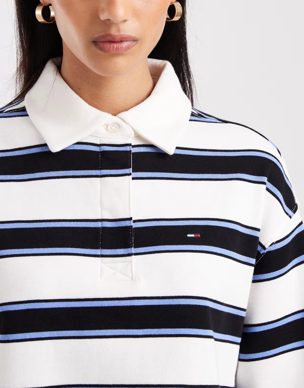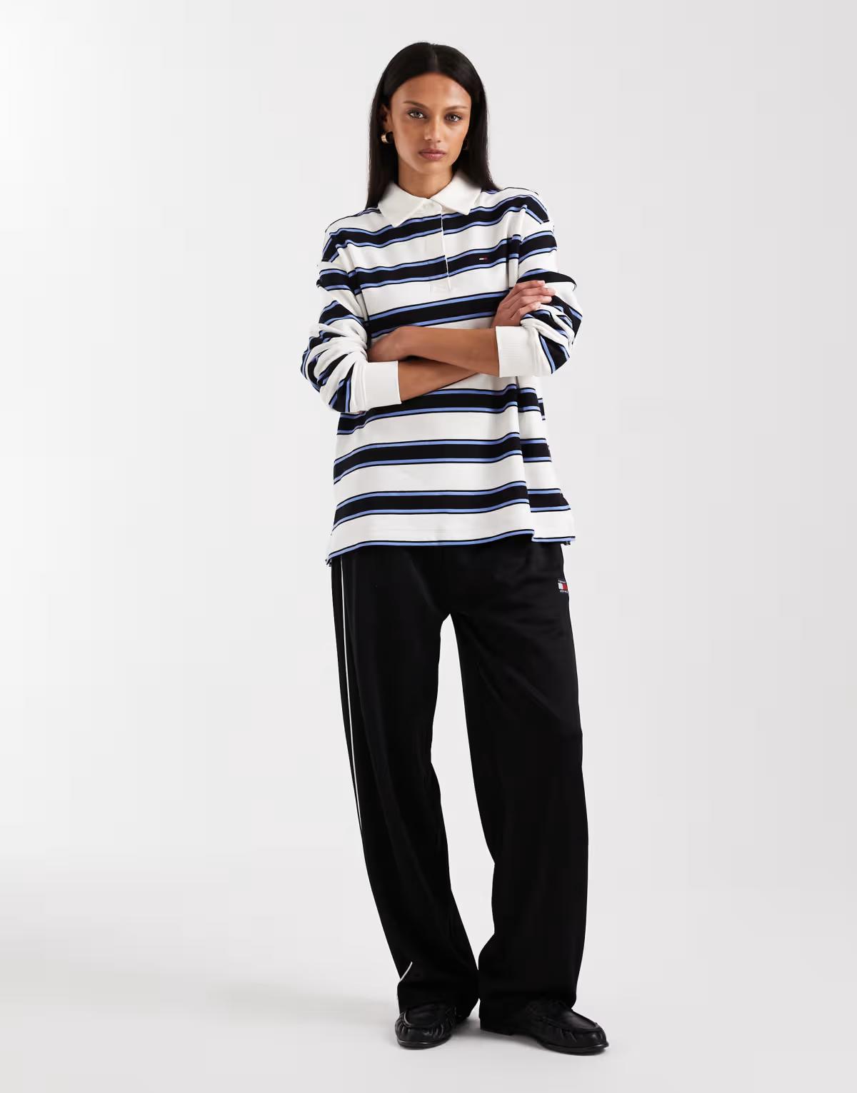 Tommy Jeans collegiate stripe rugby shirt in white and blue