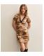 Brown Animal Print Lace Trim Mini Dress