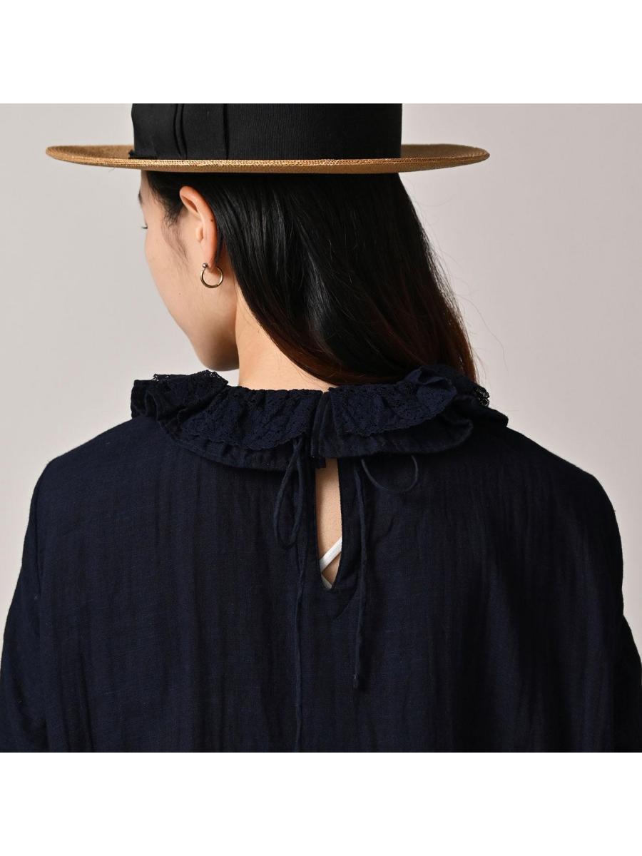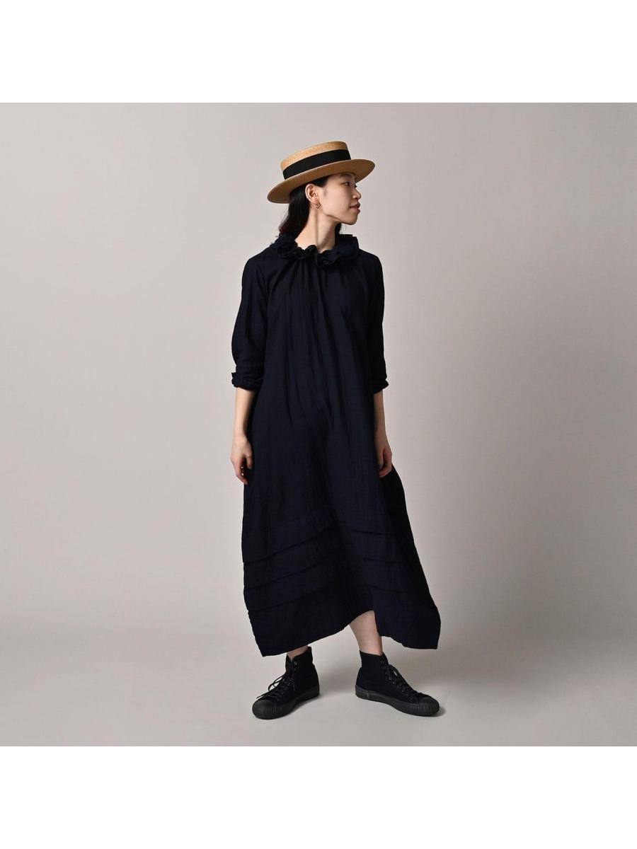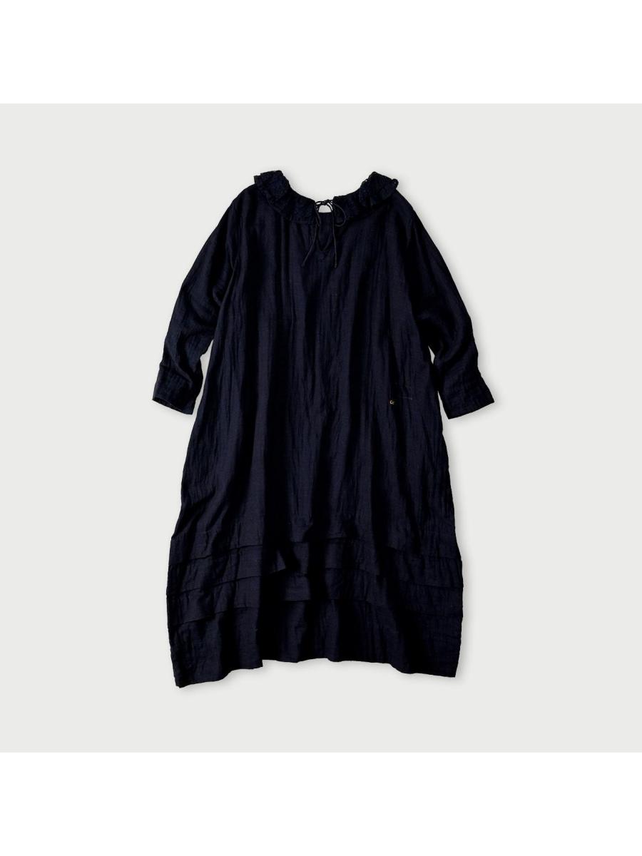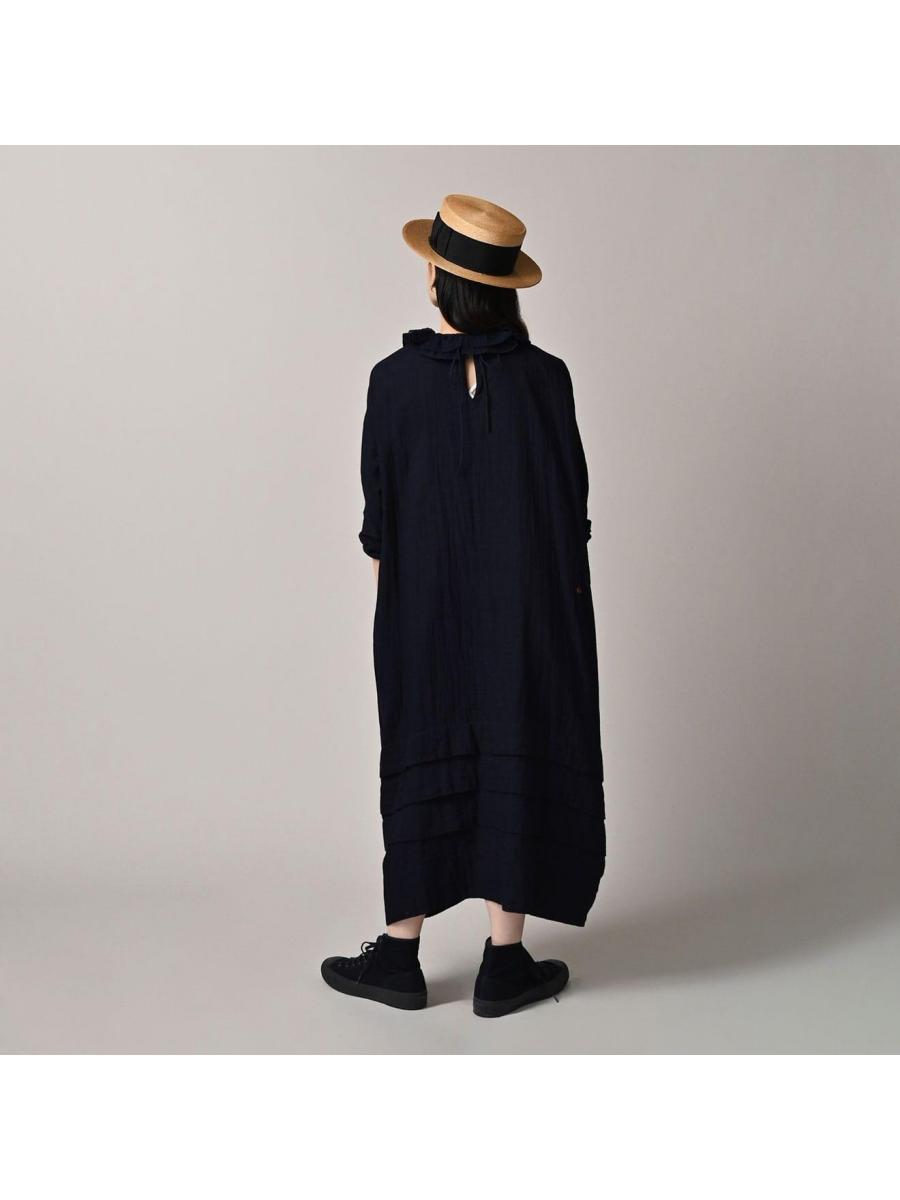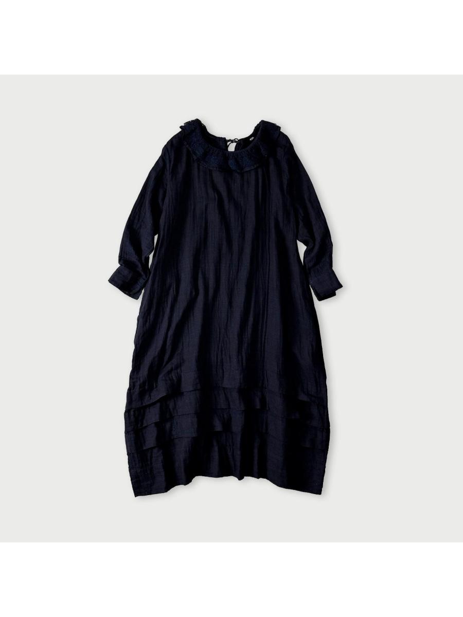 ガーゼ二重織のフリルカラードレス(インディゴ)