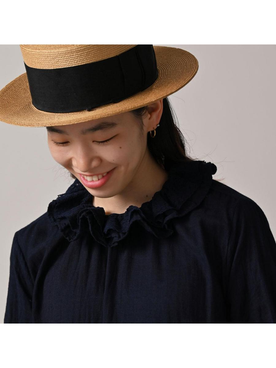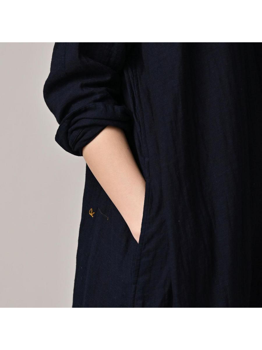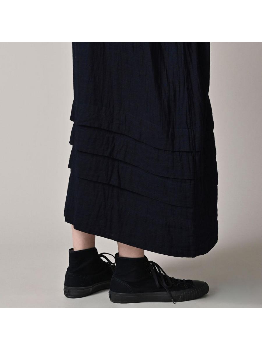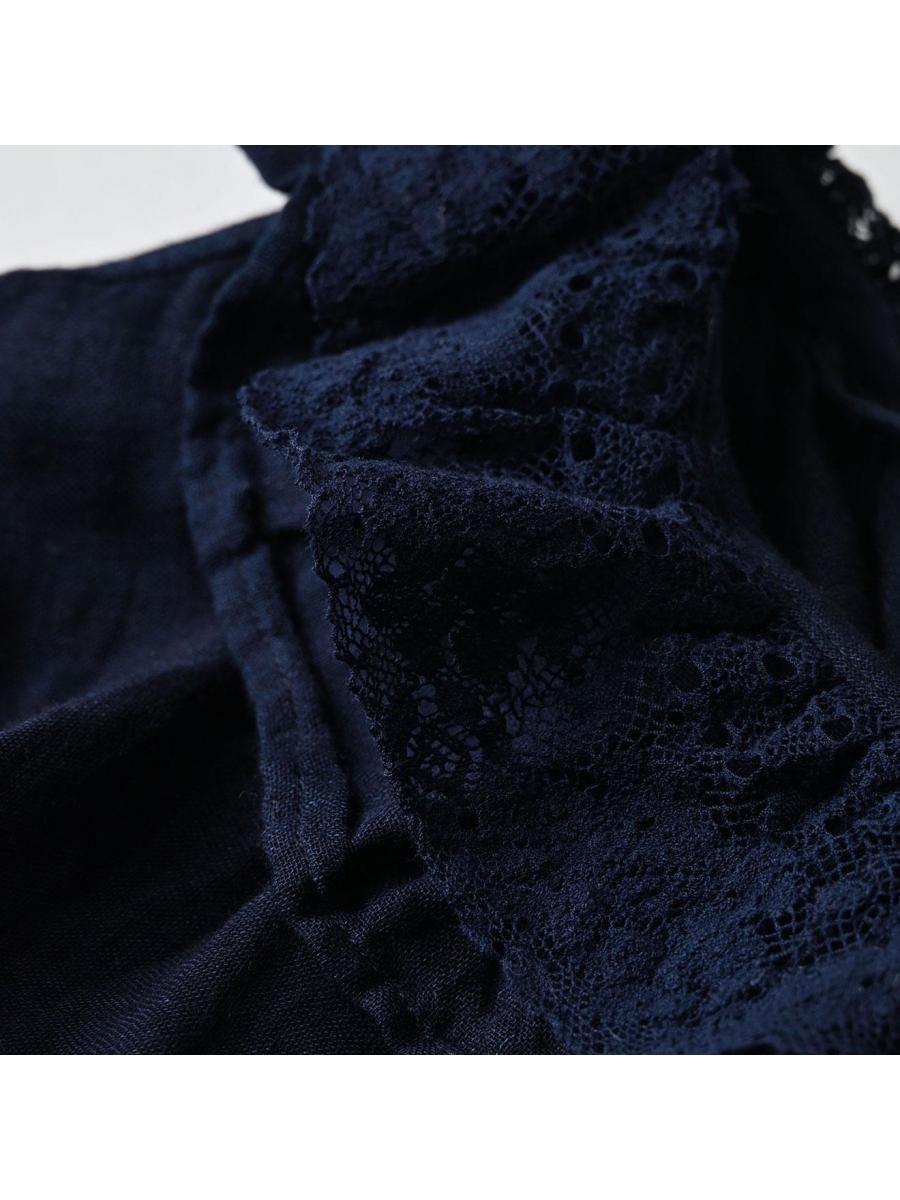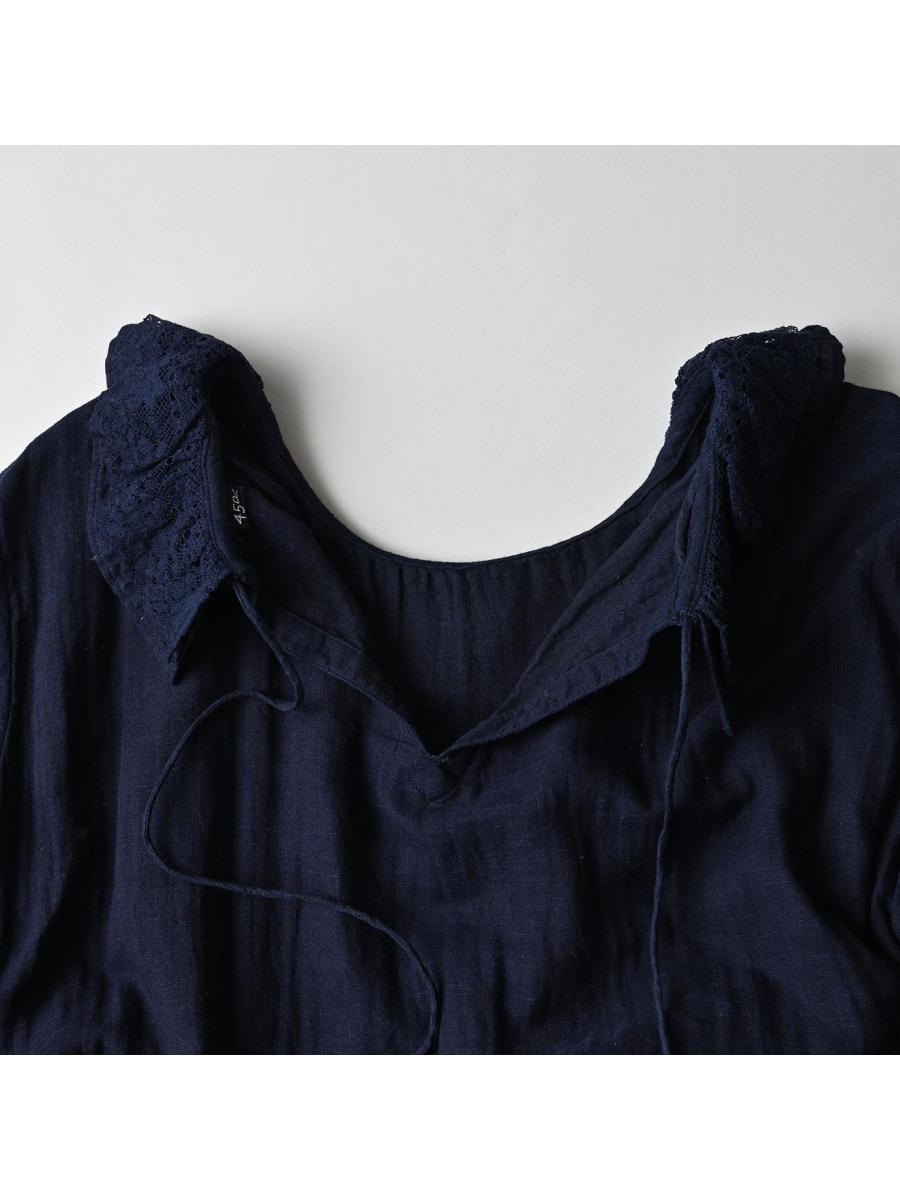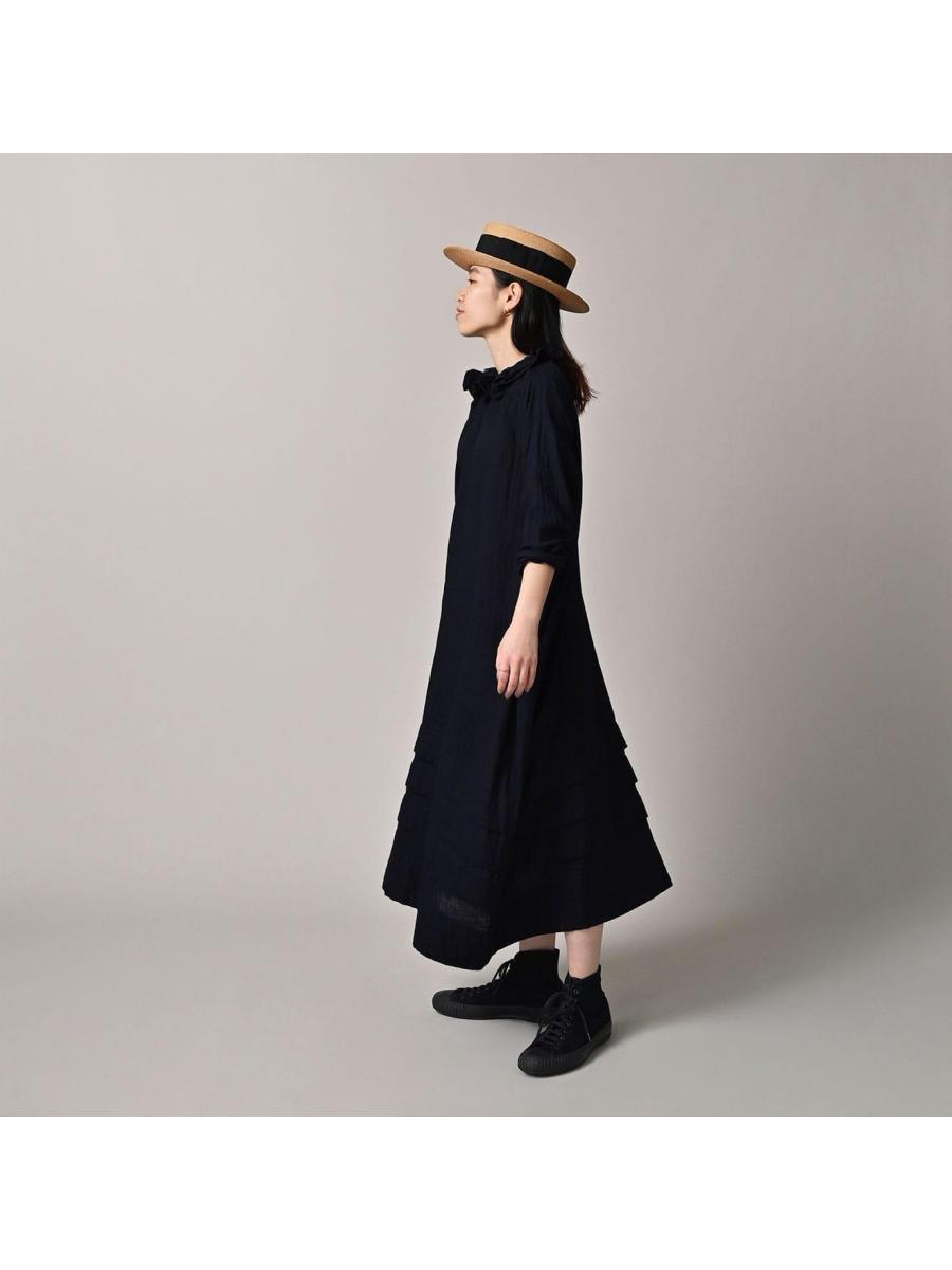 ガーゼ二重織のフリルカラードレス(インディゴ)