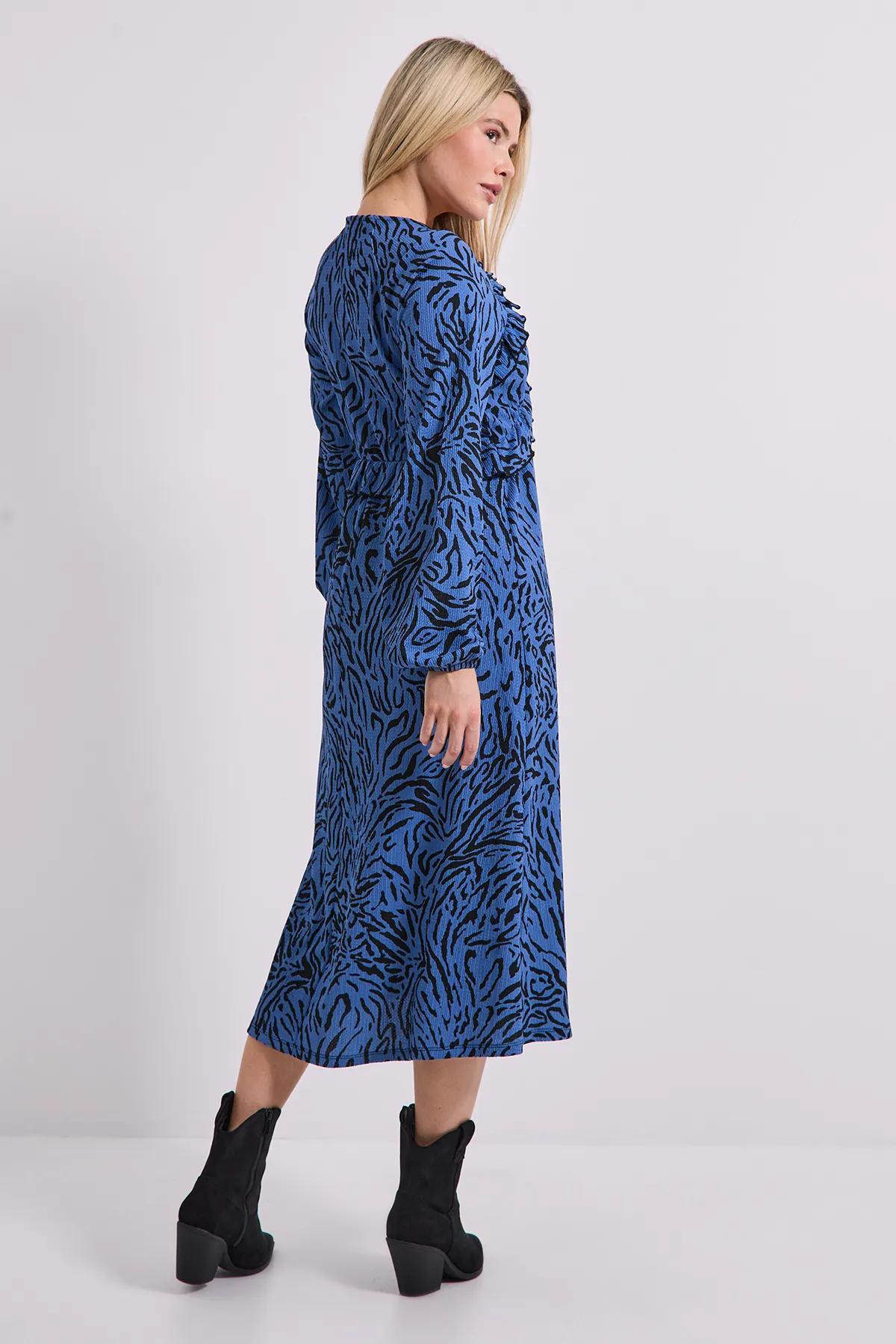 Discover Blue Zebra Empire Seam Frill Detail Jersey Midi Dress available to buy online at boohoo.com. Available with quick delivery and easy return options. Shop now!