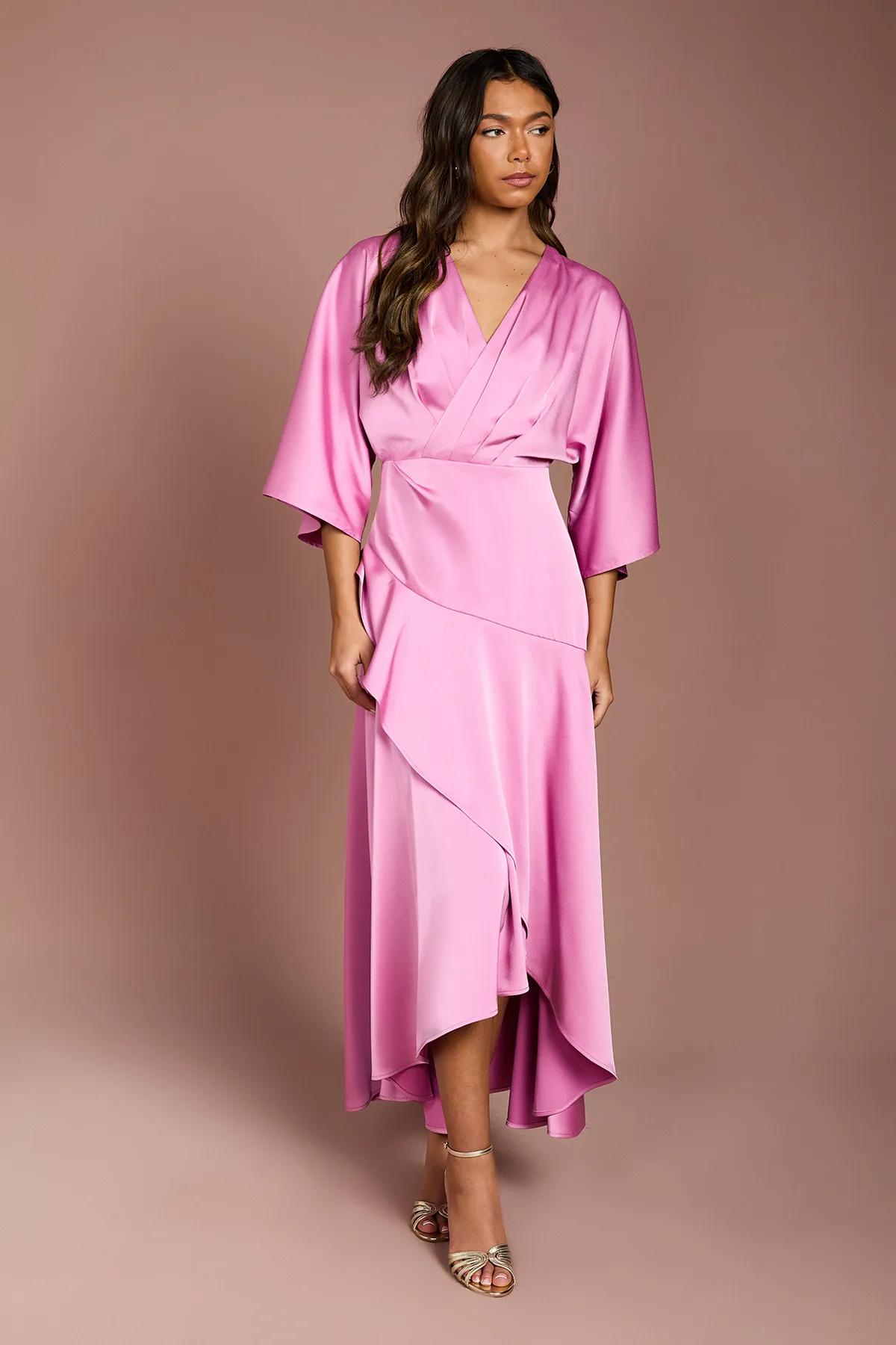 Dresses | Satin Back Crepe Ruffle Wrap Midi Dress | Coast