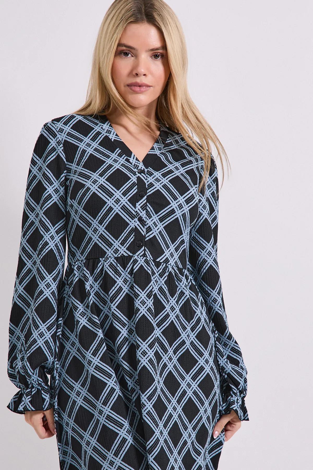 Discover Gingham Button Detail Blouson Sleeve Jersey Mini Dress available to buy online at boohoo.com. Available with quick delivery and easy return options. Shop now!
