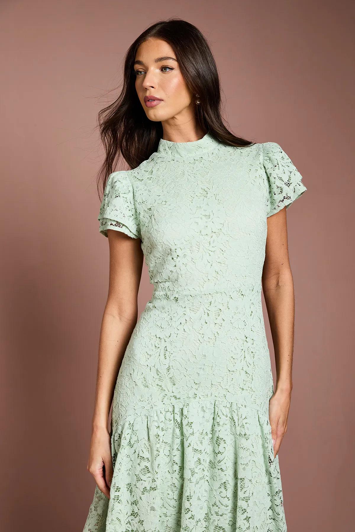 Dresses | Lace Frill Sleeve High Neck Midi | Coast