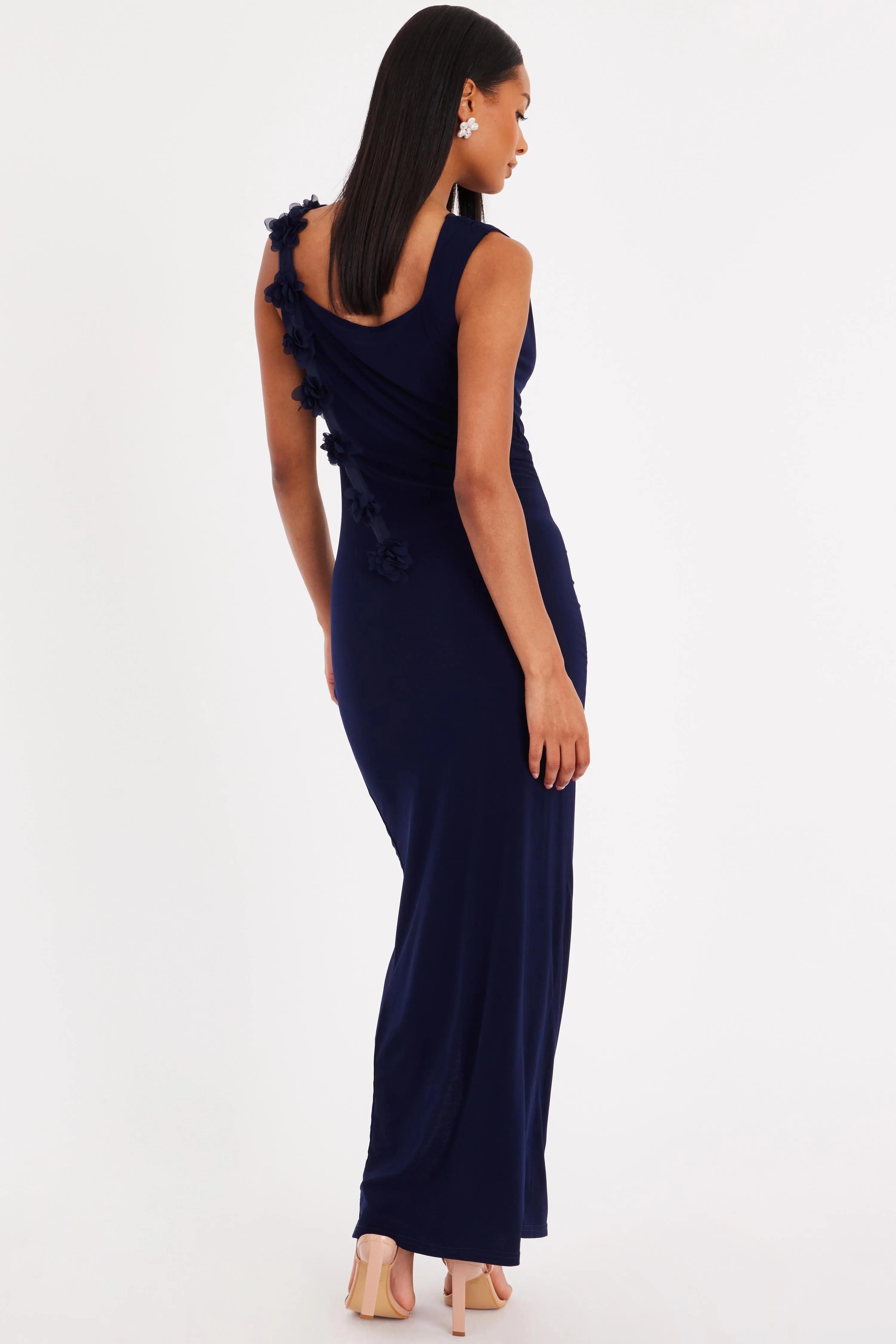 Dresses | Navy Floral Detail Maxi Dress | Quiz