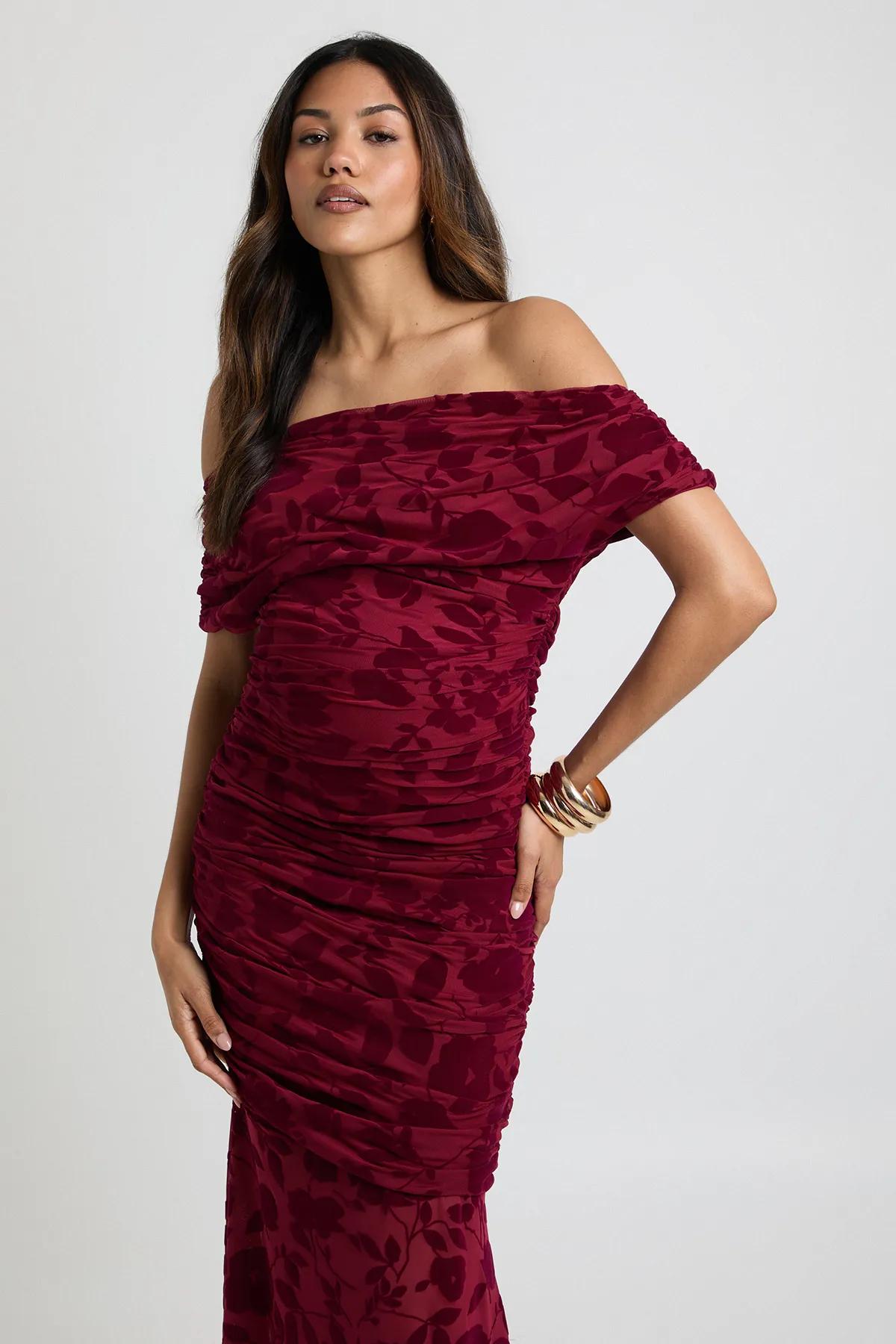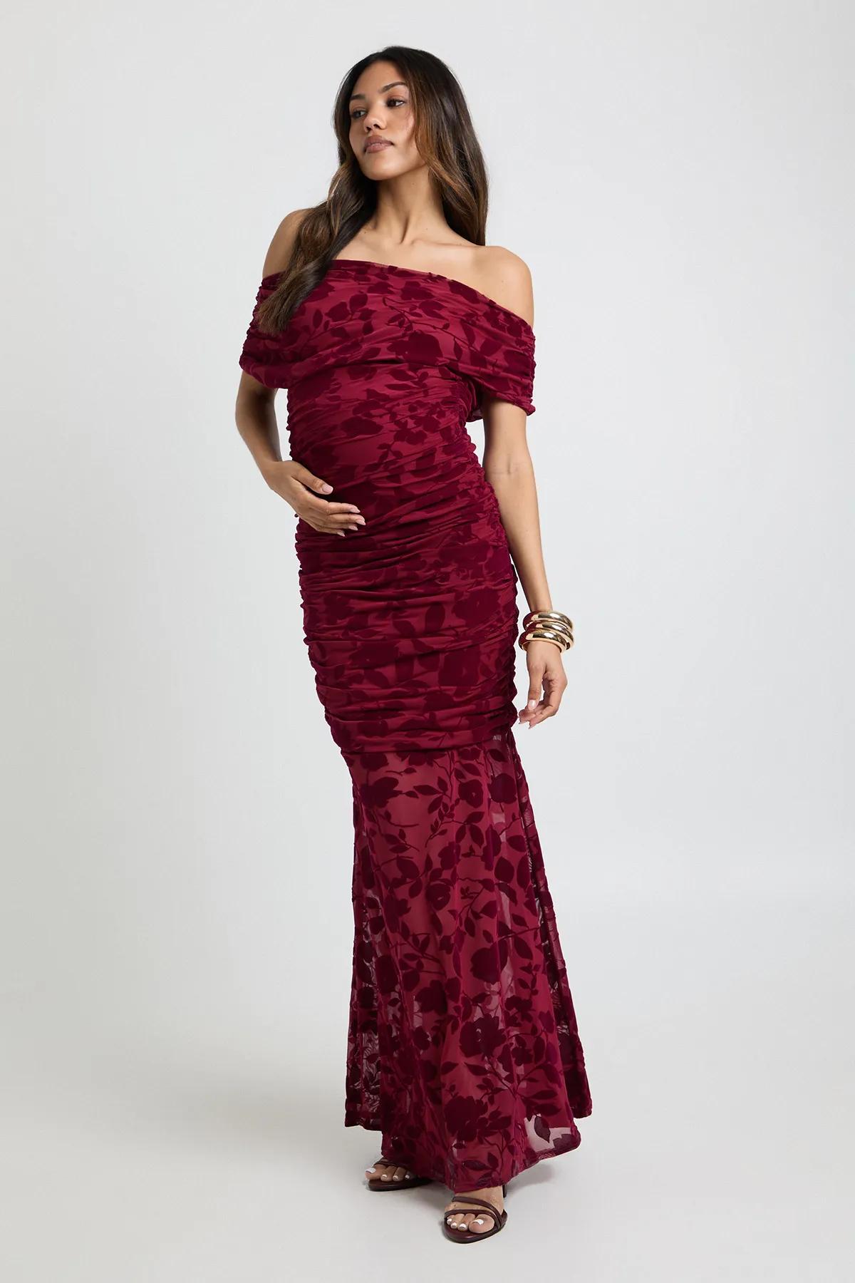 Dresses | Maternity Devore Asymmetric Neckline Sheer Skirt Maxi Dress | boohoo