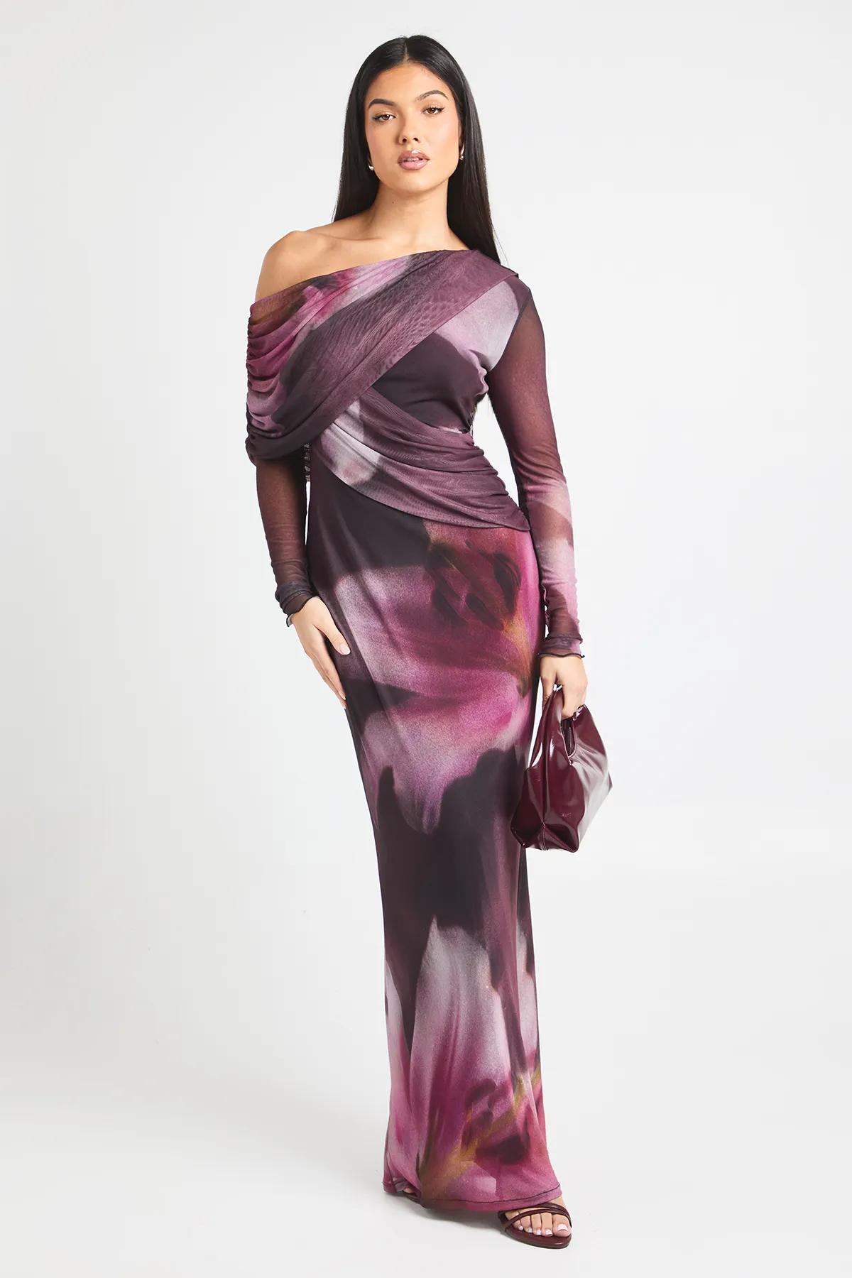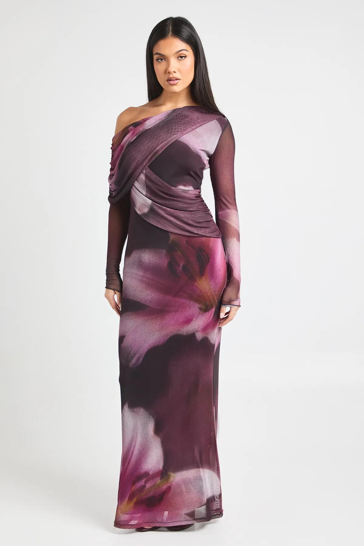 Discover Tonal Floral Mesh Drape Detail Maxi Dress available to buy online at boohoo.com. Available with quick delivery and easy return options. Shop now!