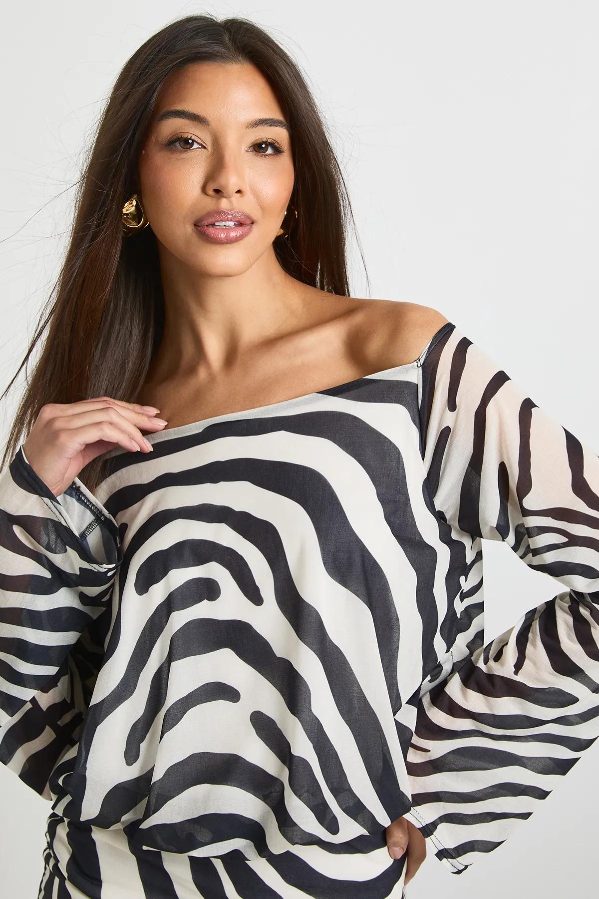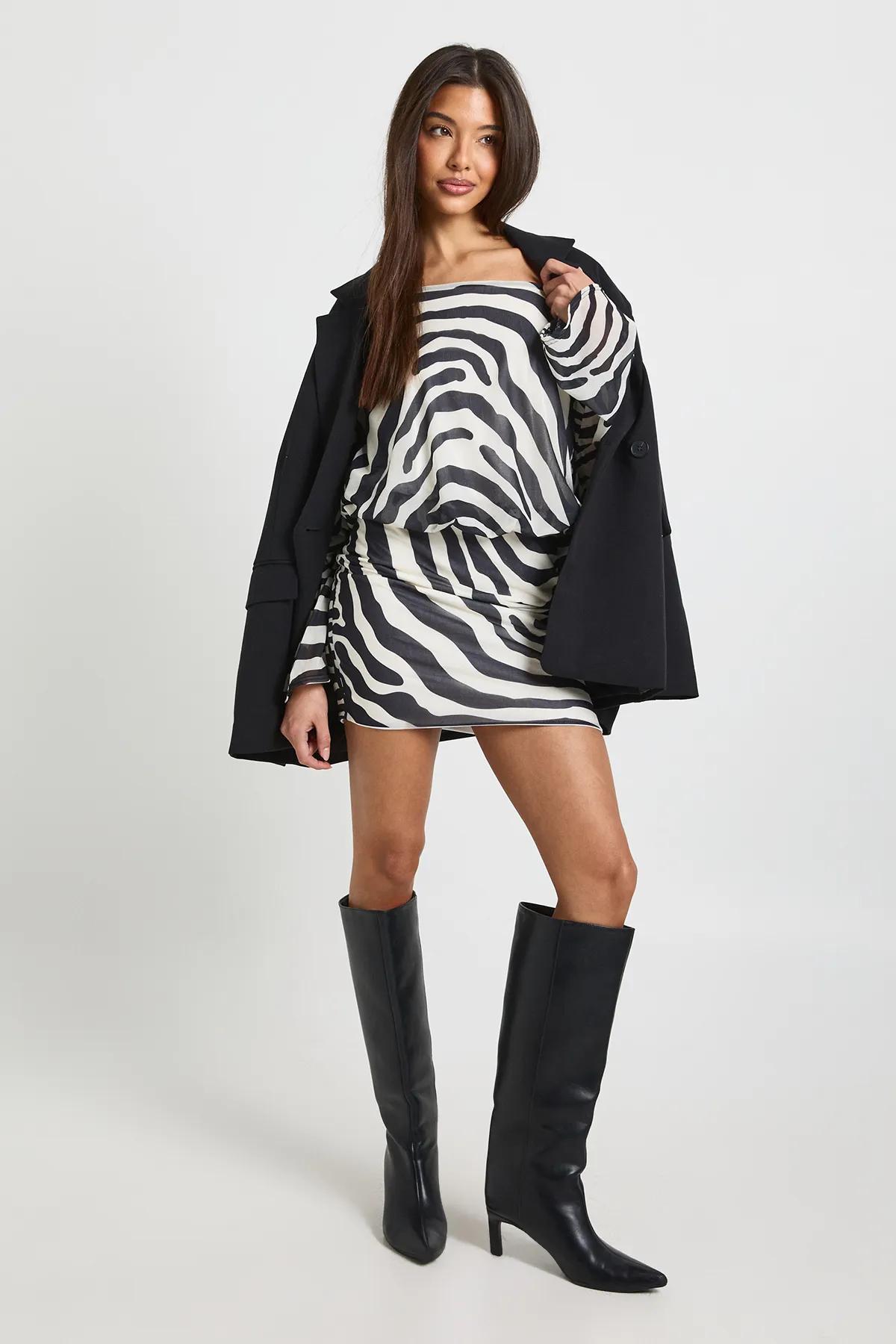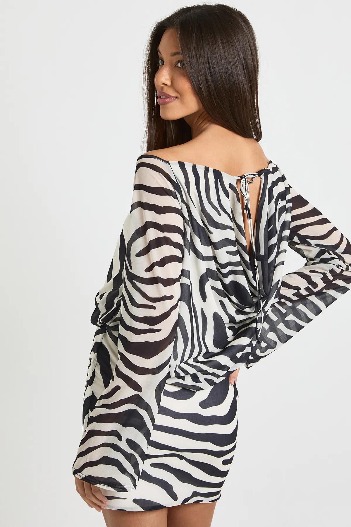 Dresses | Zebra Printed Long Sleeve Cowl Back Mini Dress | boohoo