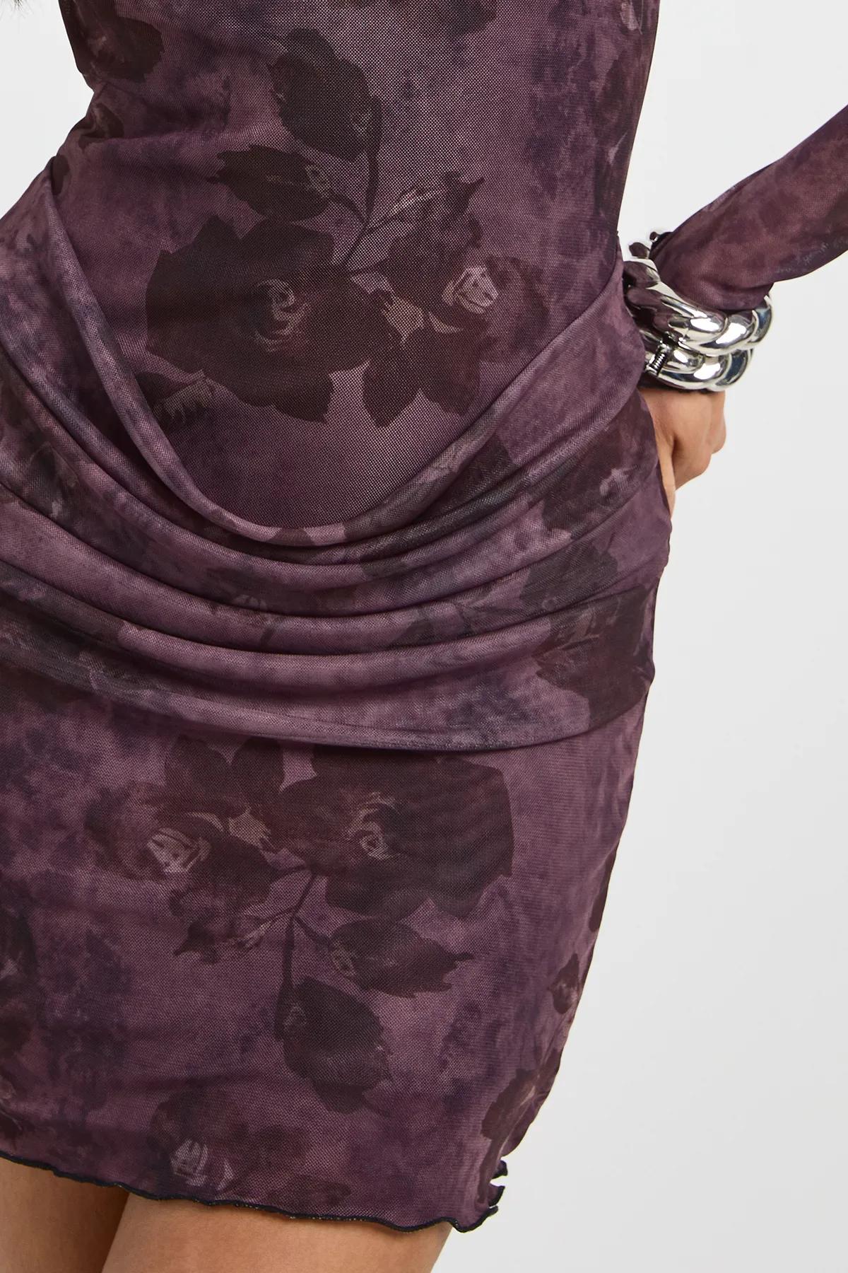 Dresses | Floral Mesh Drape Waist Detail Mini Dress | boohoo